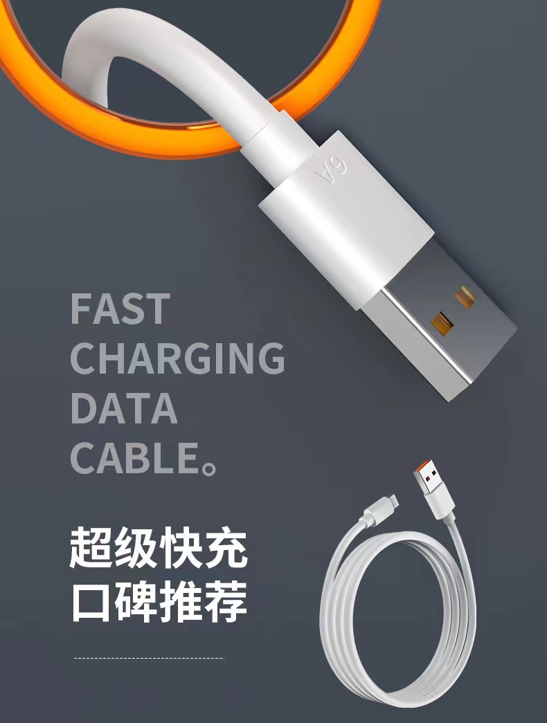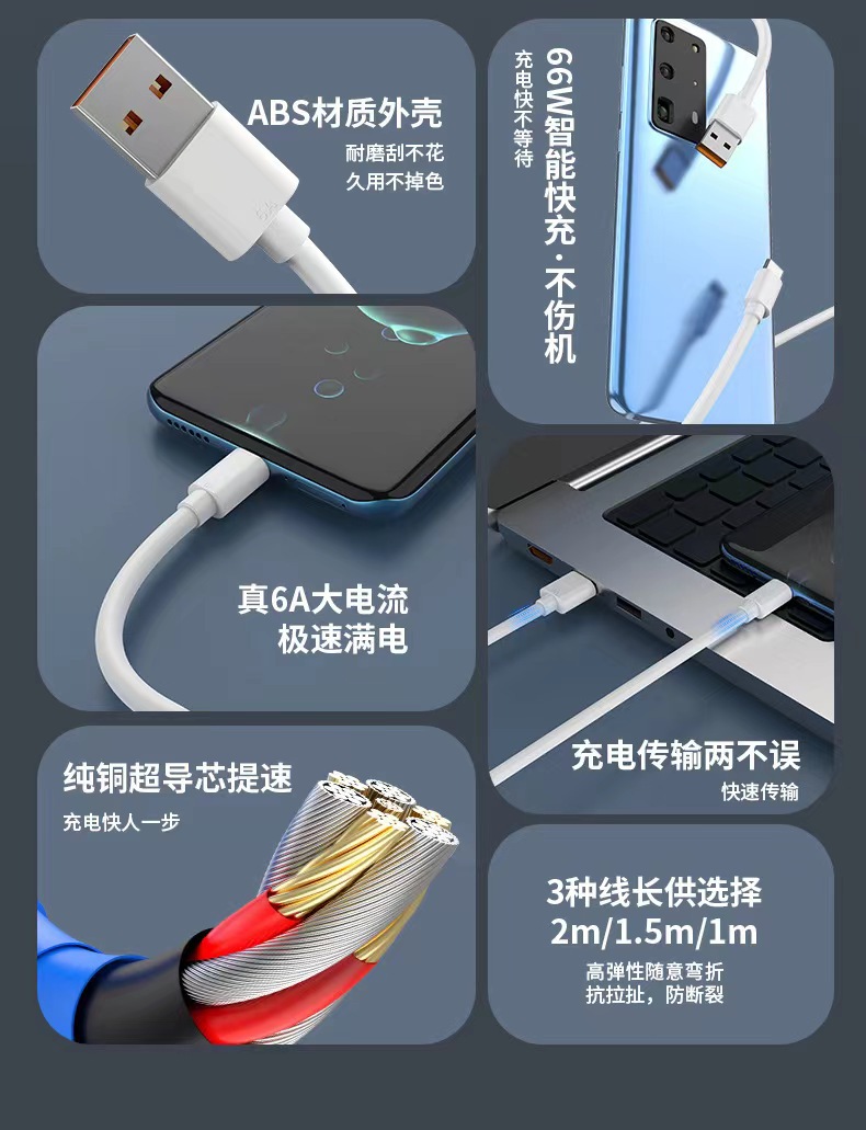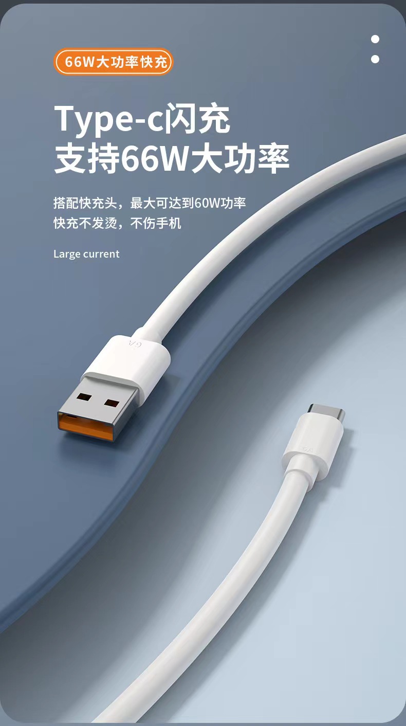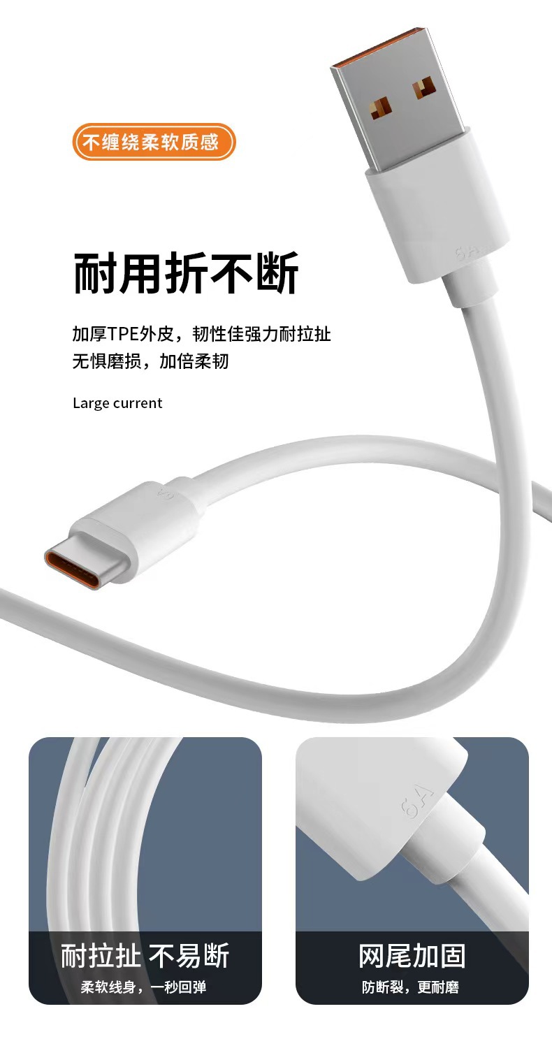 6A cable de datos de carga súper rápida tipo c adecuado para cable de datos Huawei teléfono móvil Honor USB carga flash cable de carga 66w