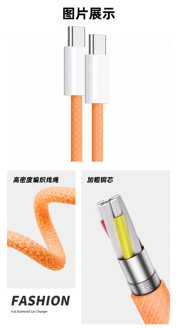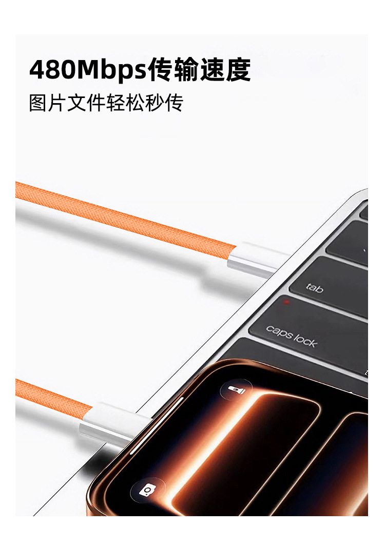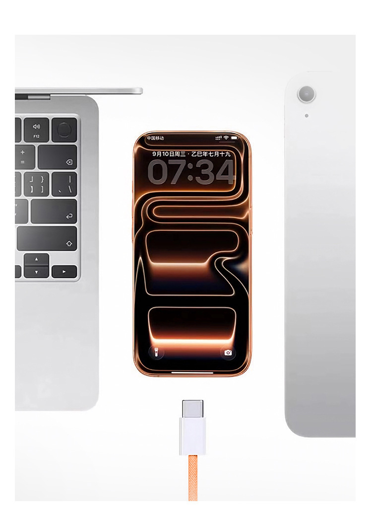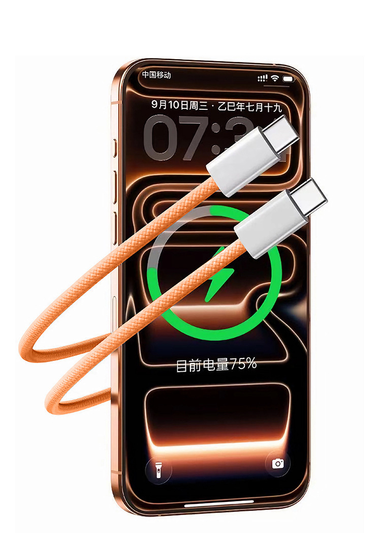 Nuevo cable de datos trenzado Apple 17promax naranja PD60W doble cable de carga rápida tipo-c