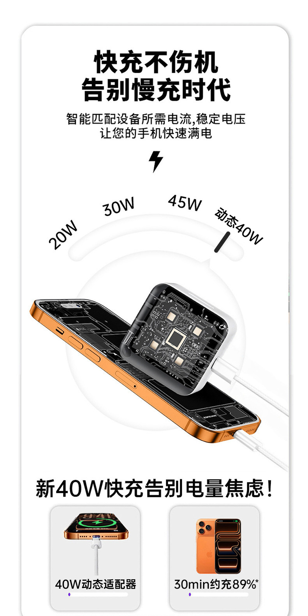PD40W Dinámico cabeza de carga rápida Certificación 3C 60W para Apple 17promax cabeza de carga plegable de Apple