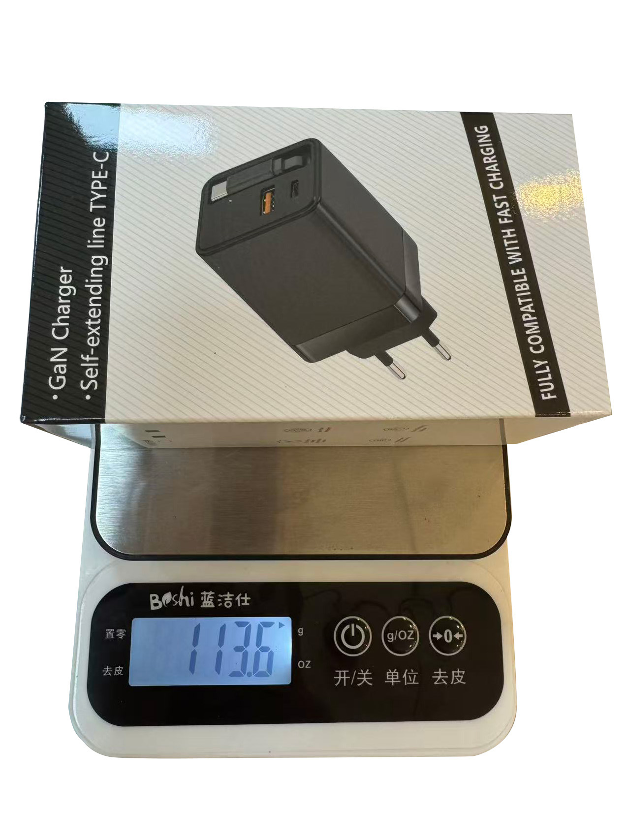 Cargador de nitruro de gallio de 80W PD cabezal de carga rápida para Apple Huawei Xiaomi con lámpara cargador de cable telescópico plegable