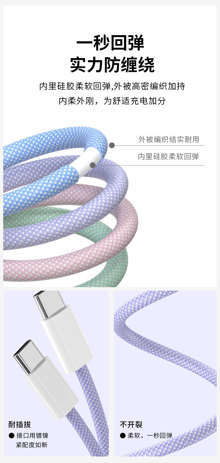 Cable de carga dual tipo c adecuado para Apple 15/16 cable de datos macaron PD cable de carga rápida cable de datos trenzado c-c