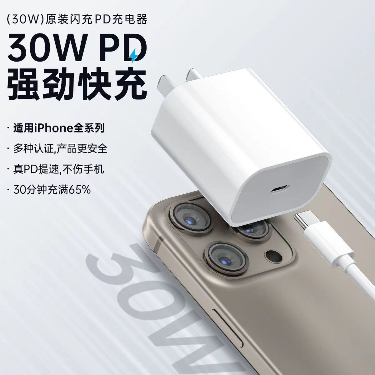 Aplicable a Apple 15 cargador de paquete original de cabeza de carga de teléfono móvil pd30w procesamiento de cable de datos de cabeza de carga rápida personalizada