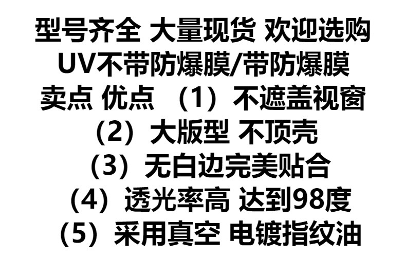 | Características de la película | HD,A prueba de explosiones,A prueba de polvo,Anti-huella dactilar,Anti-caída,Pantalla completa,Reparación automática,Pantalla no completa,Segunda caja de pegatina |