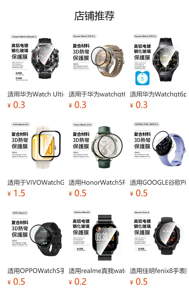Aplicable para la pantalla de reloj de arroz rojo 6 película compuesta de película suave hidrogenable PMMA curva en caliente cubierta de pantalla completa 5 película de reloj