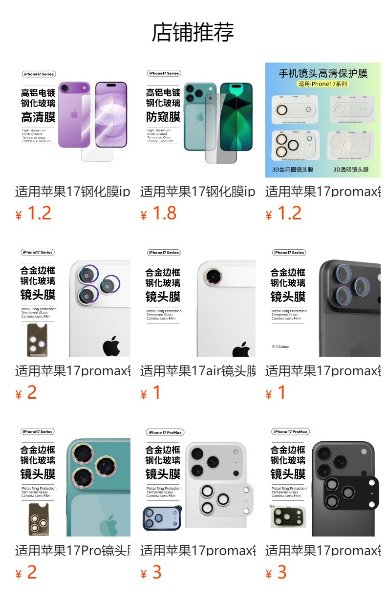 Aplicable a Apple 17 película de base de vidrio temperado más segmentación de posicionamiento de segundo conjunto de película de lente iphone 16 pro