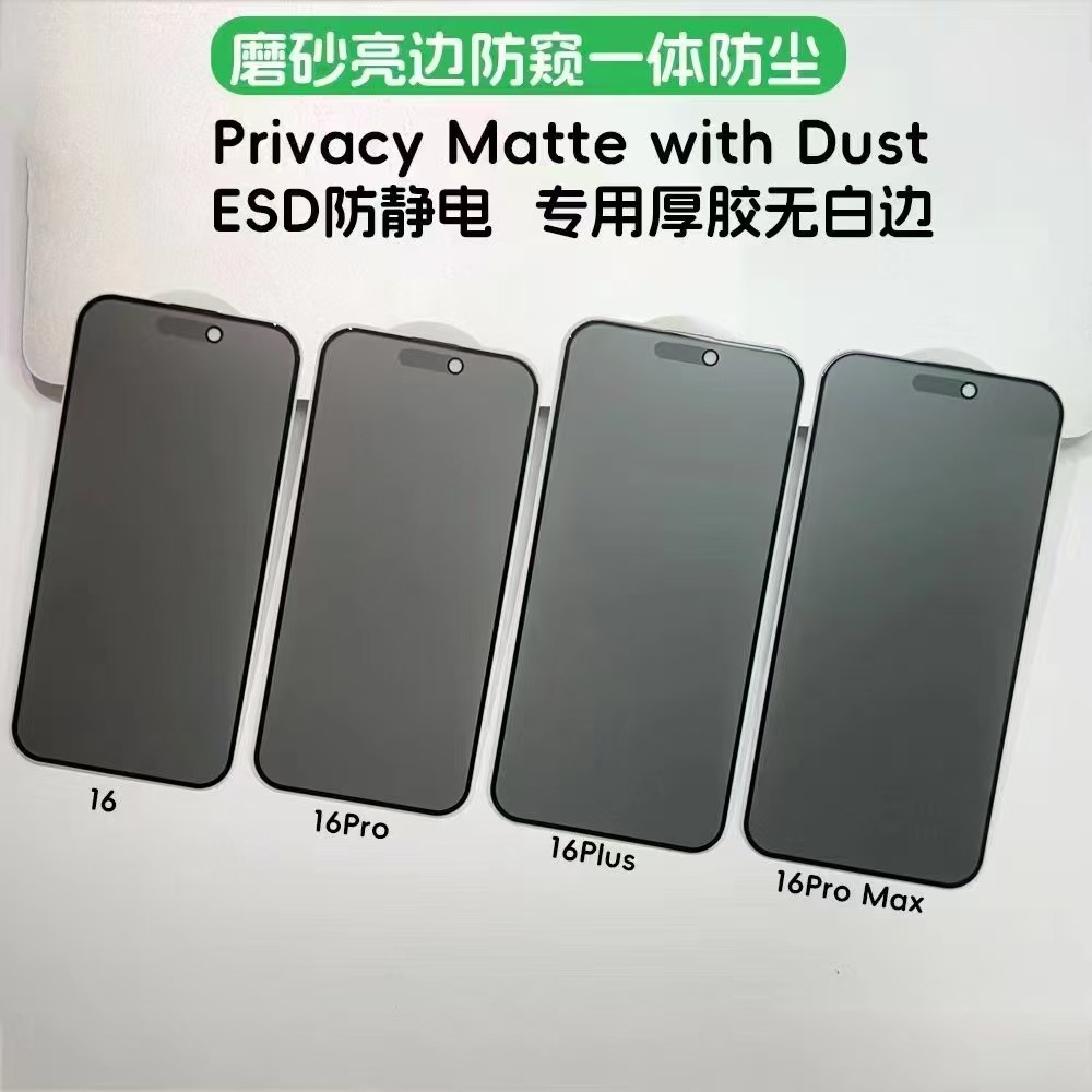 Aplicable a Apple 16 promamax brillante borde esmerilado anti-peep película de polvo endurecida iPhone 15 película de vidrio endurecido