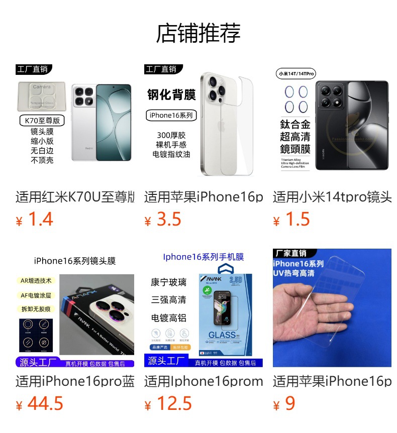 | Color | ANANK tres películas de alta definición de serigrafía, ANANK una película de alta definición de serigrafía, ANANK25 película anti-pepeep (corea de la República de Corea LG), ANANK película de silicona anti-colisión, ANANK Corning película de alta definición, ANANKAG película de esmerilado (transmisividad de luz 86%), ANANK película de luz azul incolora, ANANK película antirreflectante de mejora de la permeabilidad |