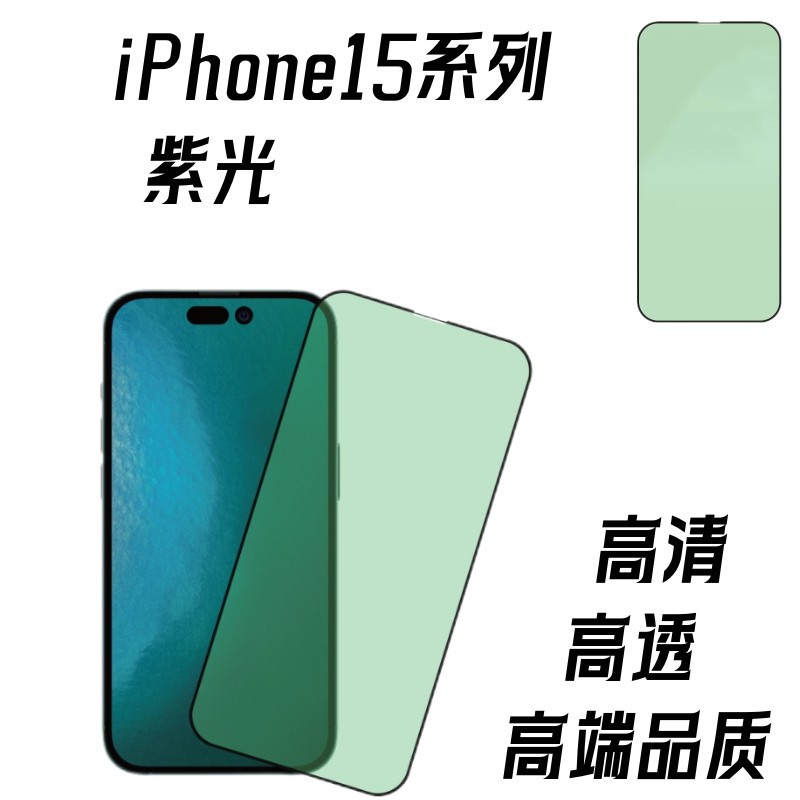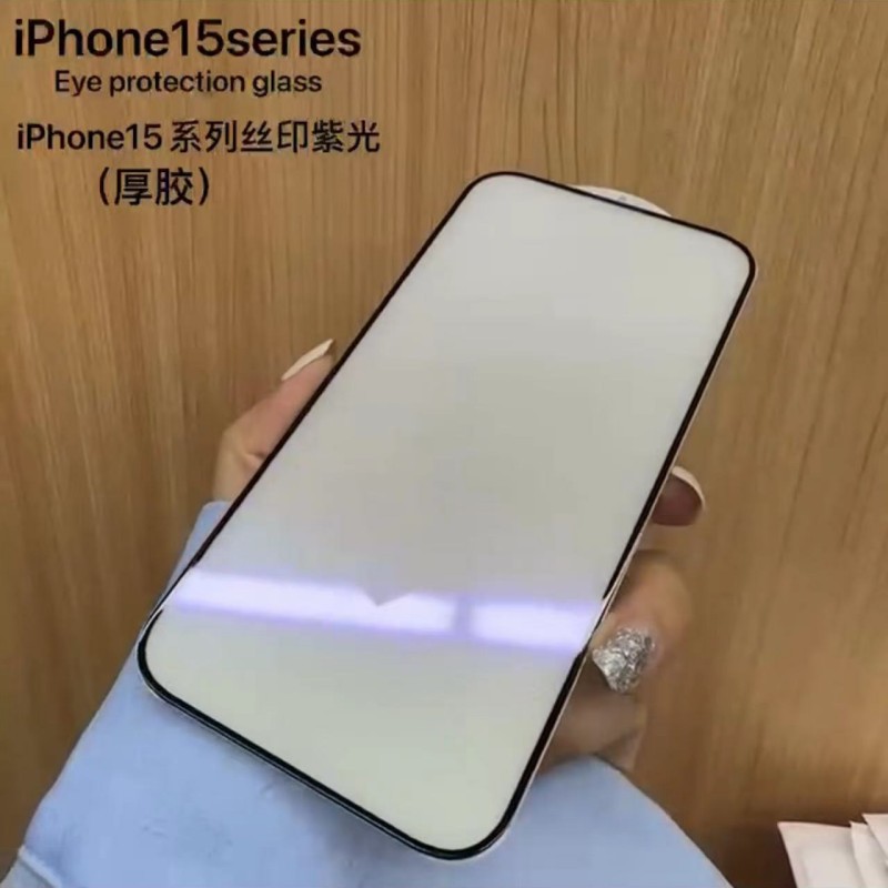 Adecuado para iPhone15Pro protección ocular de luz púrpura película templada 2.5D pantalla de seda cubierta de pantalla completa película protectora 15 película de protección ocular