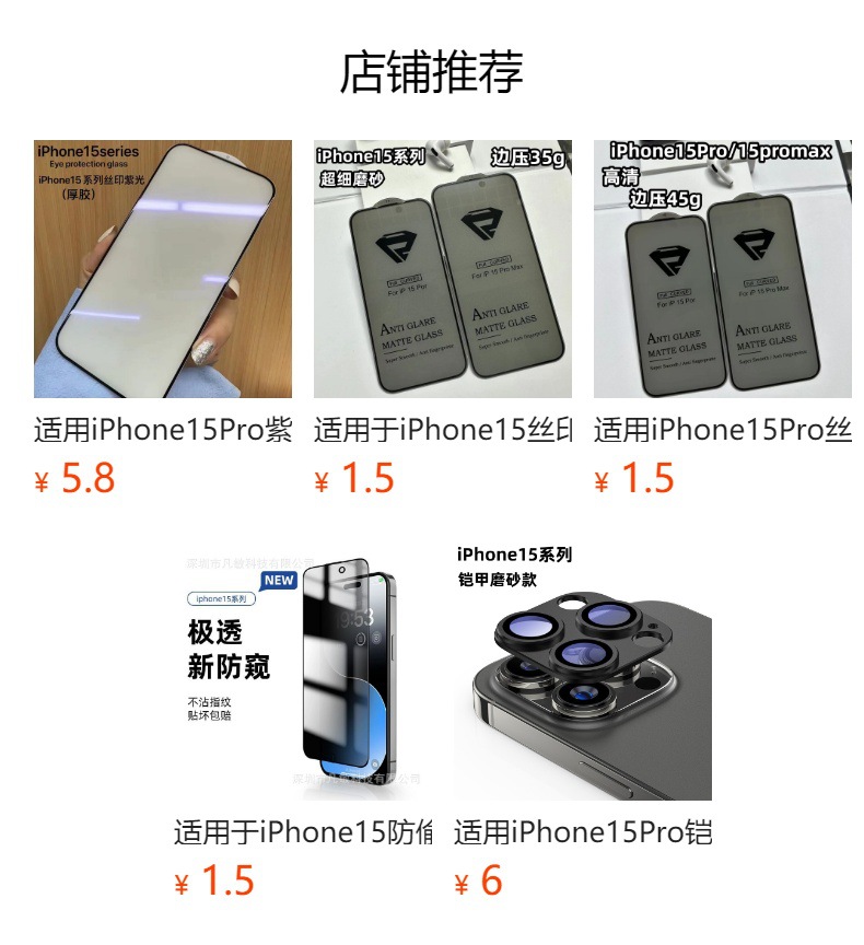 Adecuado para la marca ANANANK iPhone15 incoloro azul claro protección ocular película templada película protectora Apple 15Pro película de pantalla completa