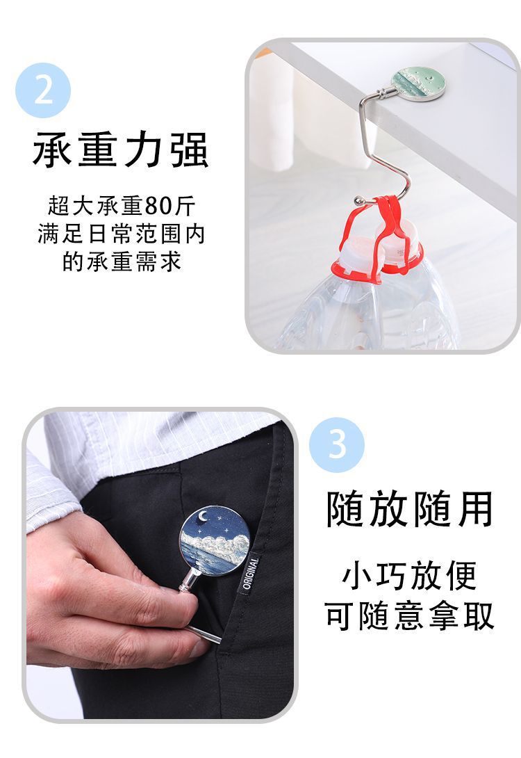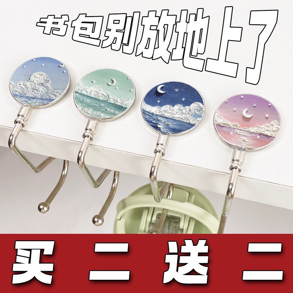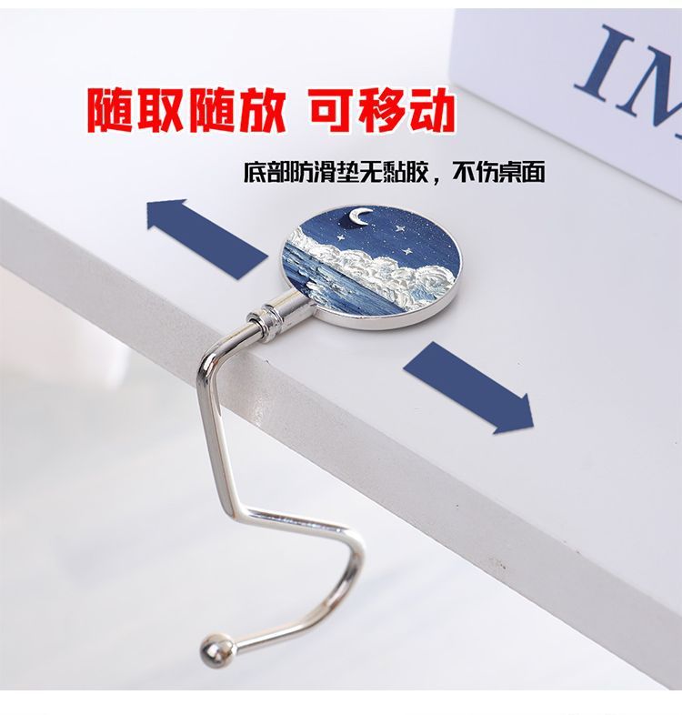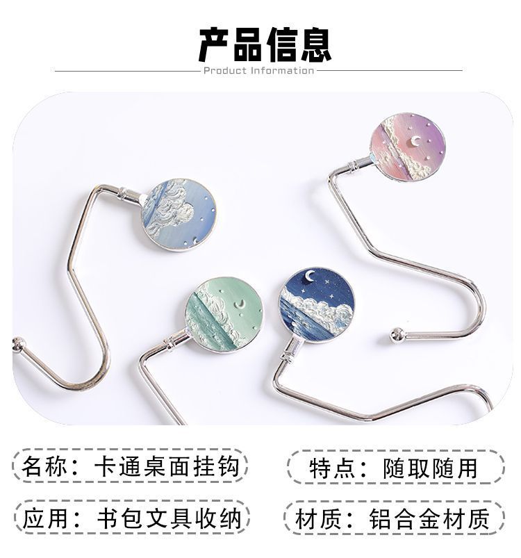 Pintura al óleo nebulosa luna mar mochila de estudiantes gancho de escritorio de escritorio desmontable gancho de escritorio antideslizante