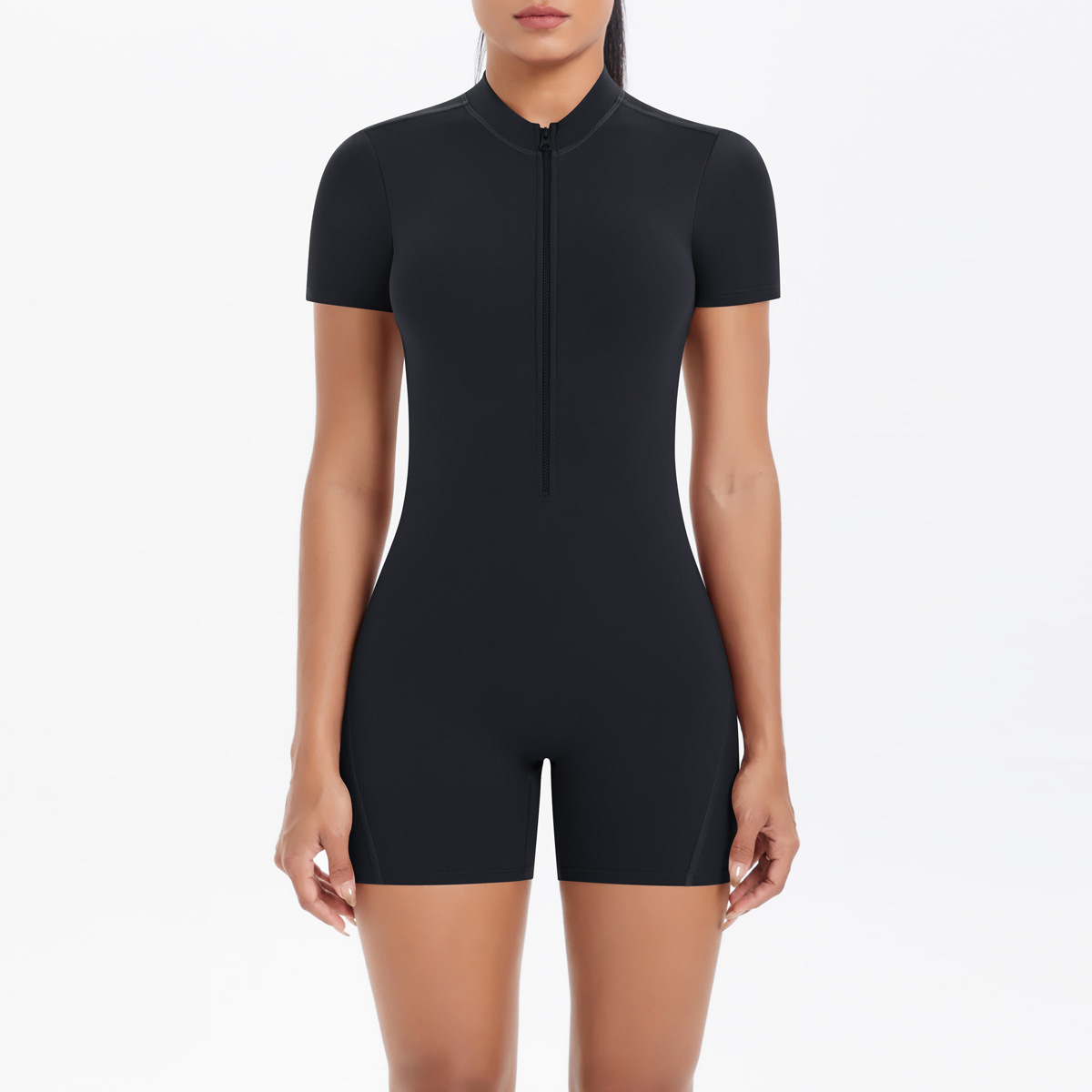 Europa y los Estados Unidos de nuevo medio abierto cremallera hueco hermoso pantalones cortos de espalda para elevar las caderas combinación de manga larga combinación de yoga