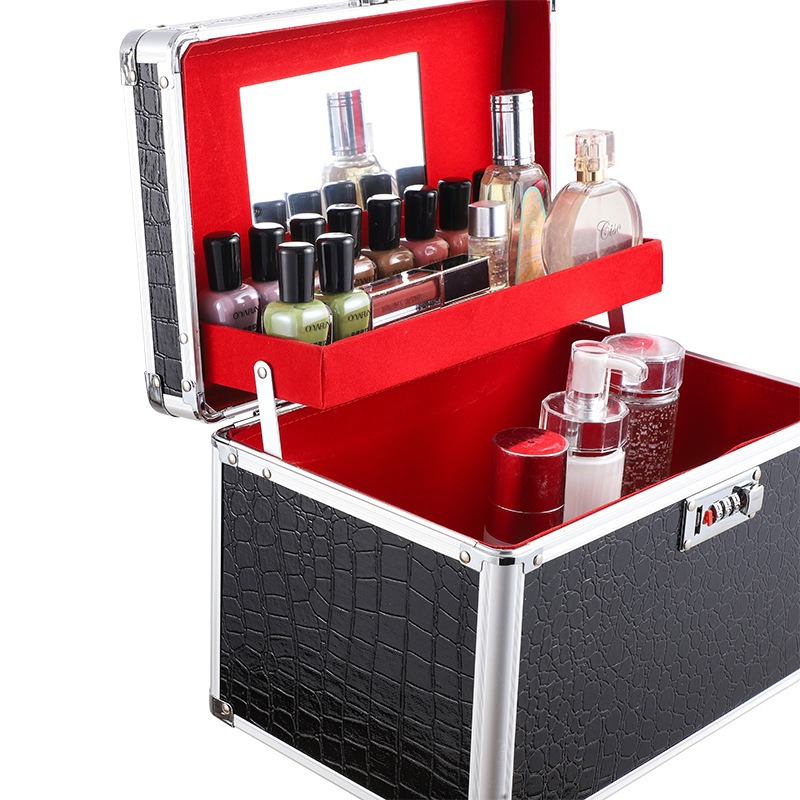 Caja de maquillaje multifuncional con espejo con lámpara portátil de gran capacidad caja de herramientas de maquillaje caja de almacenamiento de manicuras de mercado nocturno