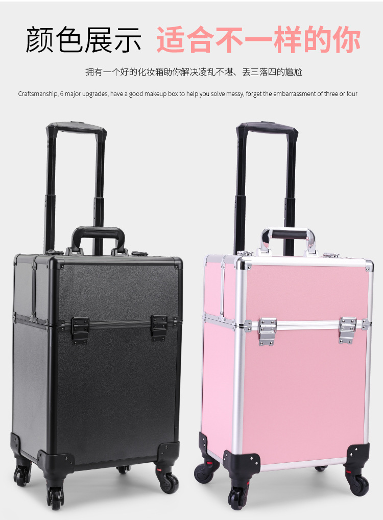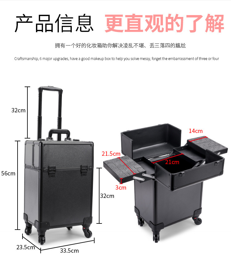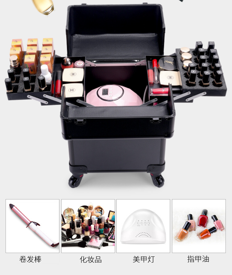 Caja de maquillaje multicapa, caja de tracción de maquillaje profesional, caja de herramientas de bordado de uñas, peluquería, maquillaje especial de gran capacidad