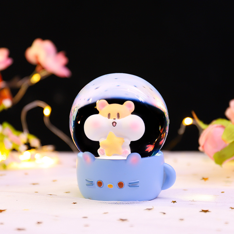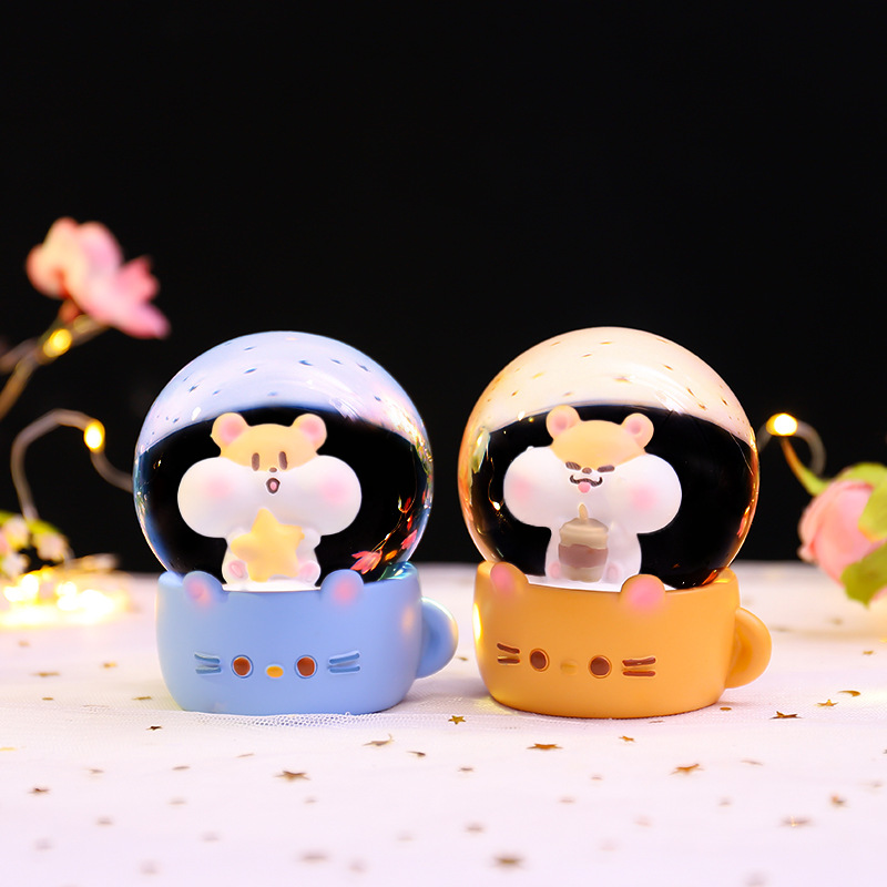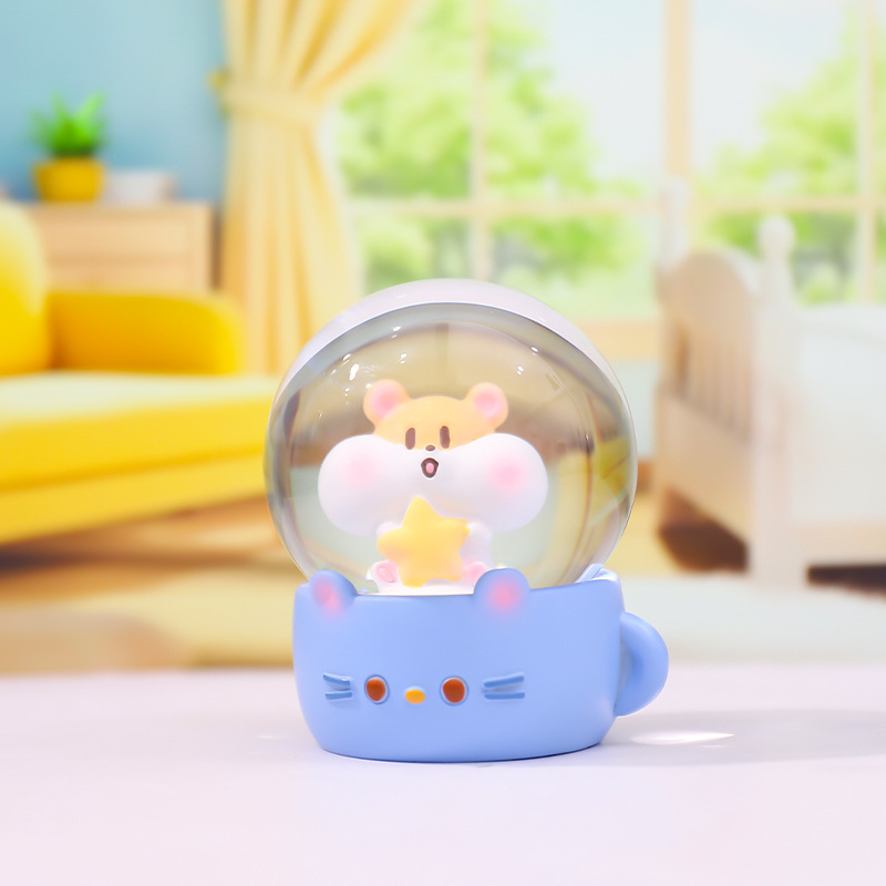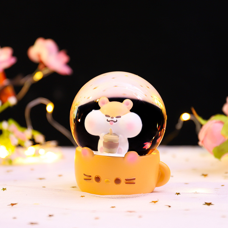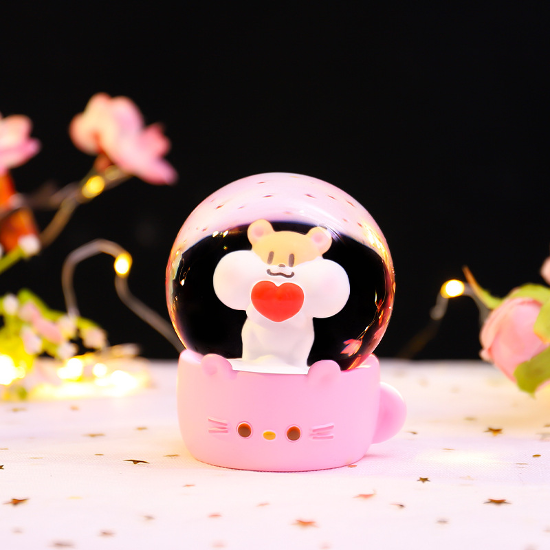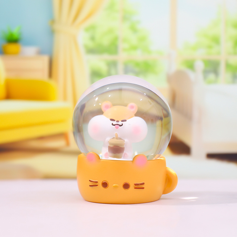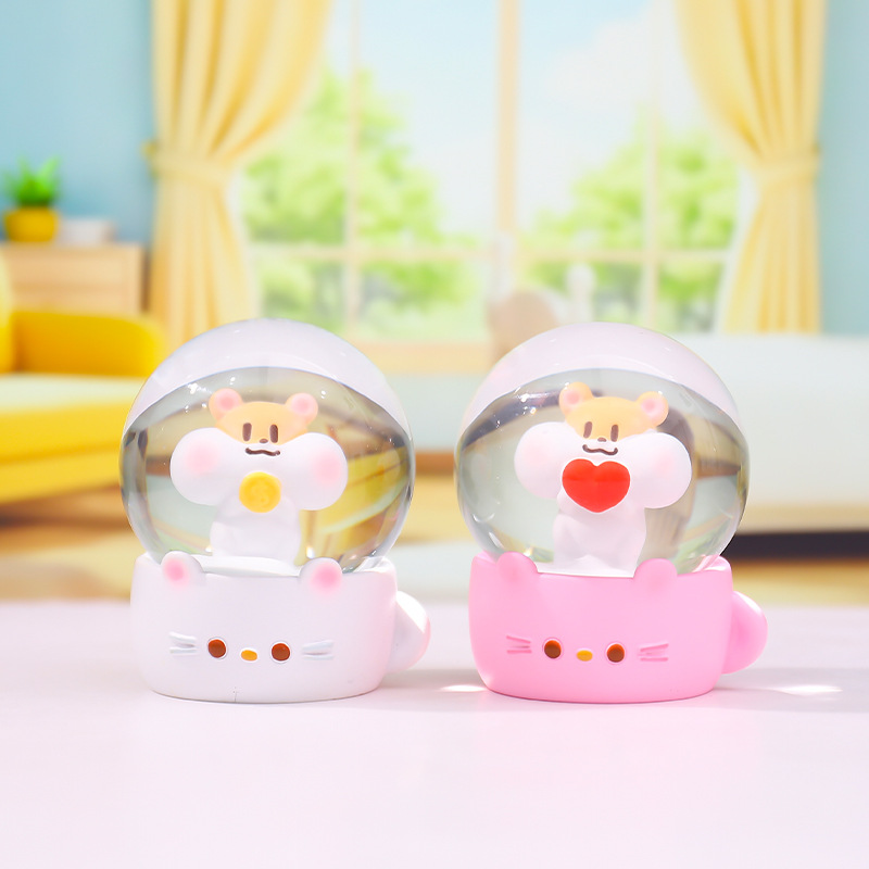 Cartoon brillante flocos de nieve mini agua adornos leche té ratón bola de cristal regalo regalo de cumpleaños para niños fábrica al por mayor