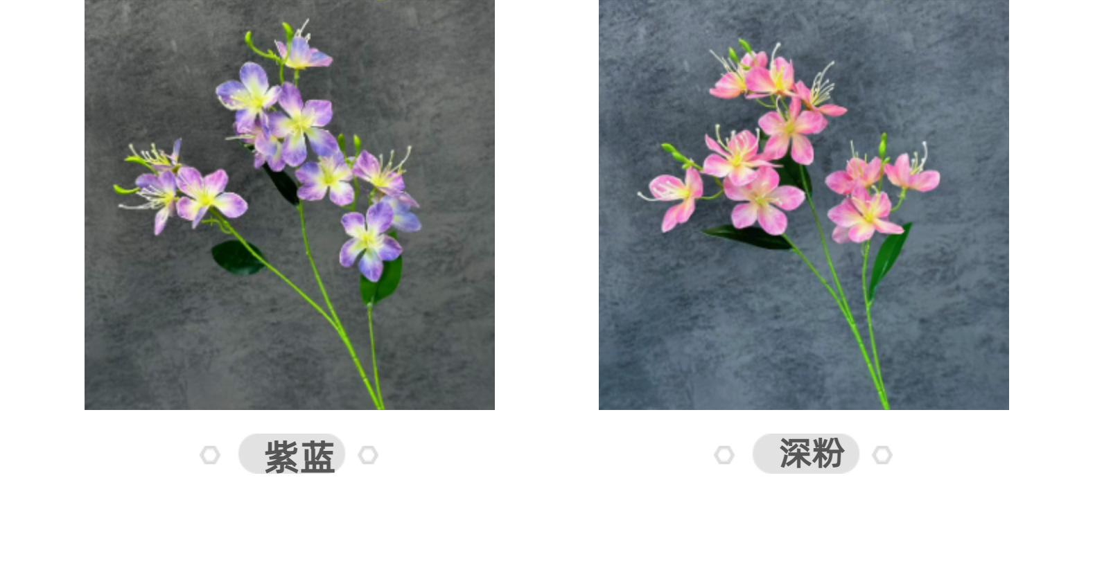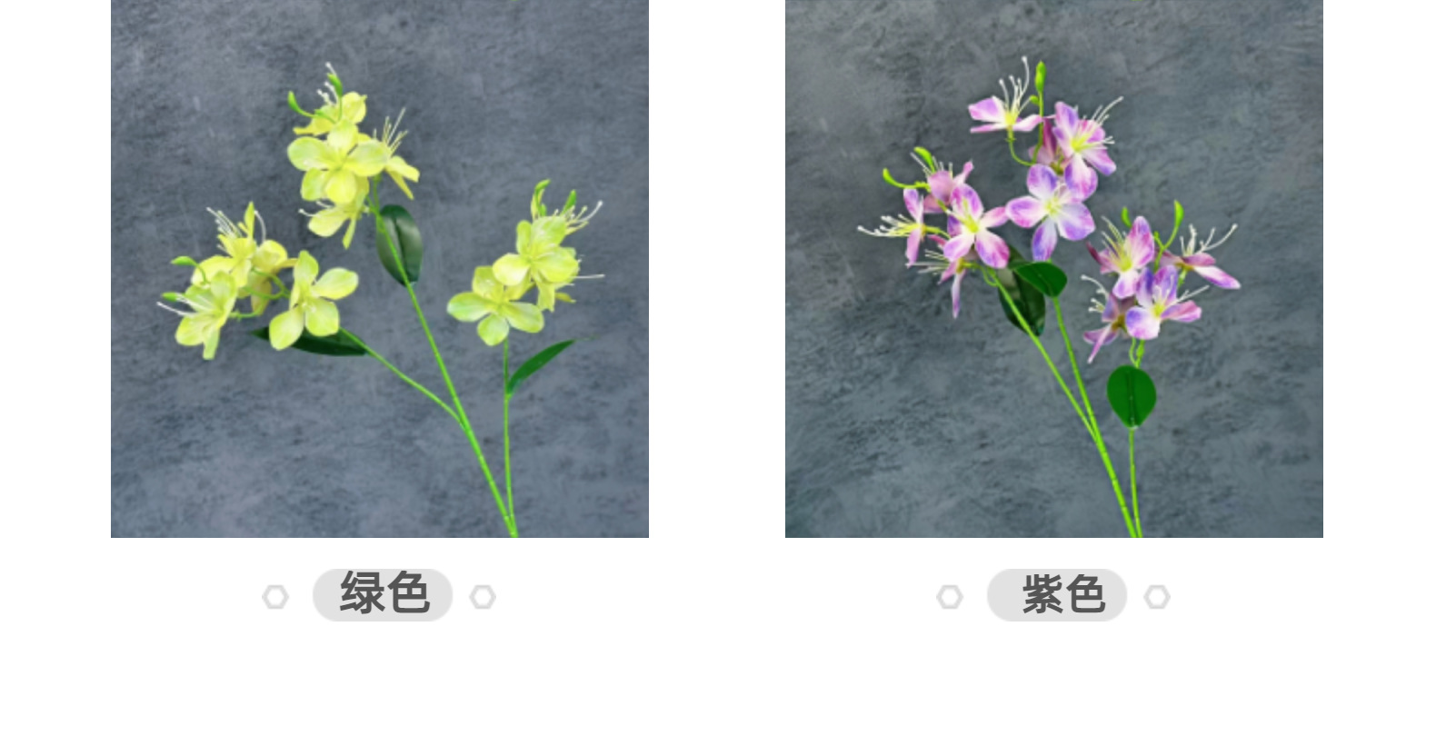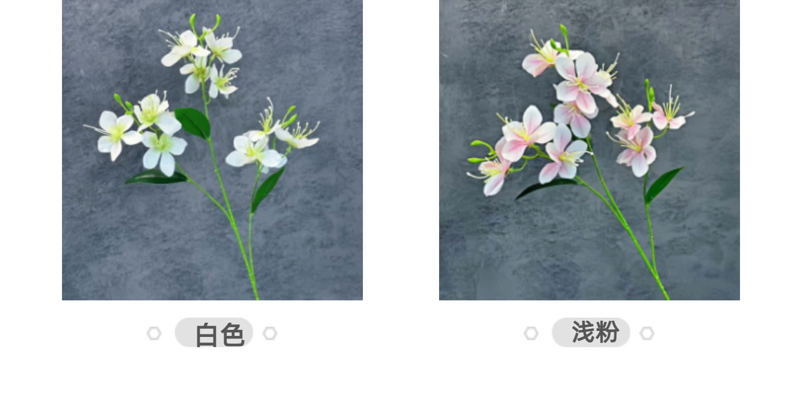 | Color | Blanco, violeta, púrpura, rosa oscuro, verde, rosa claro |