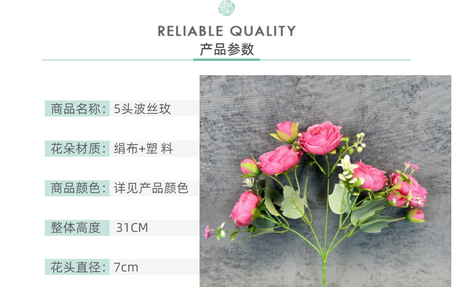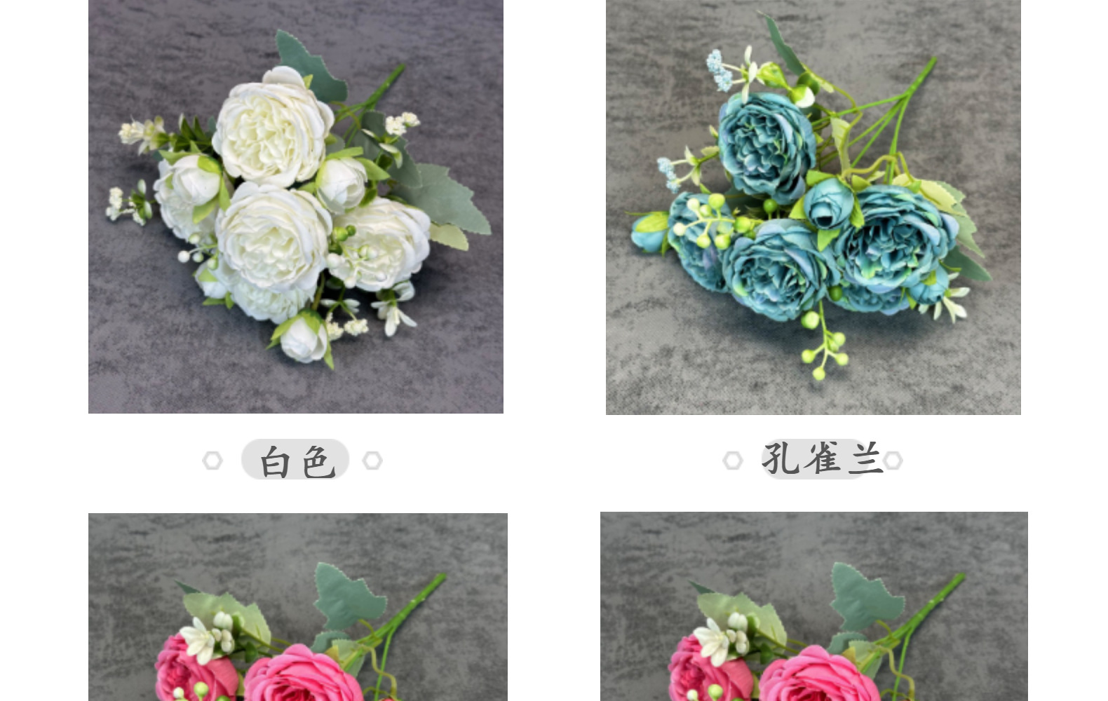 | Colores | Blanco,Rosa,Polvo profundo,Rosa roja,Azul pavo real,Púrpura oscuro,Rojo oscuro |