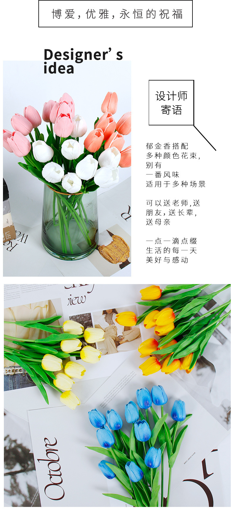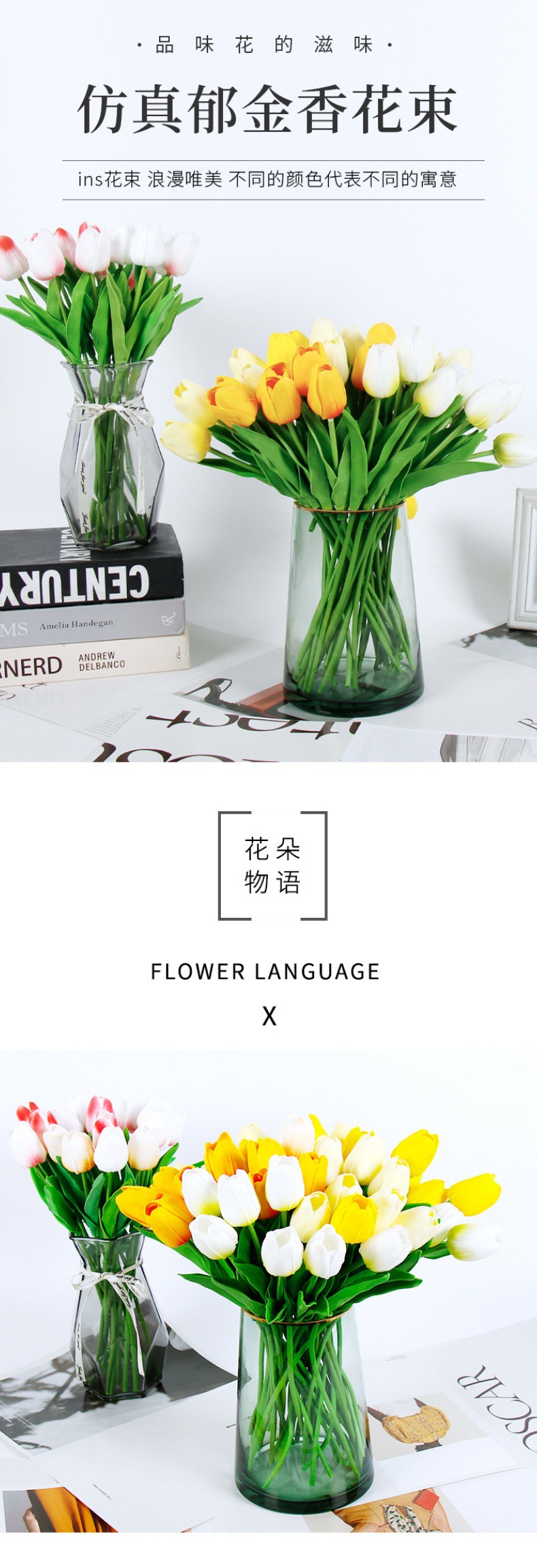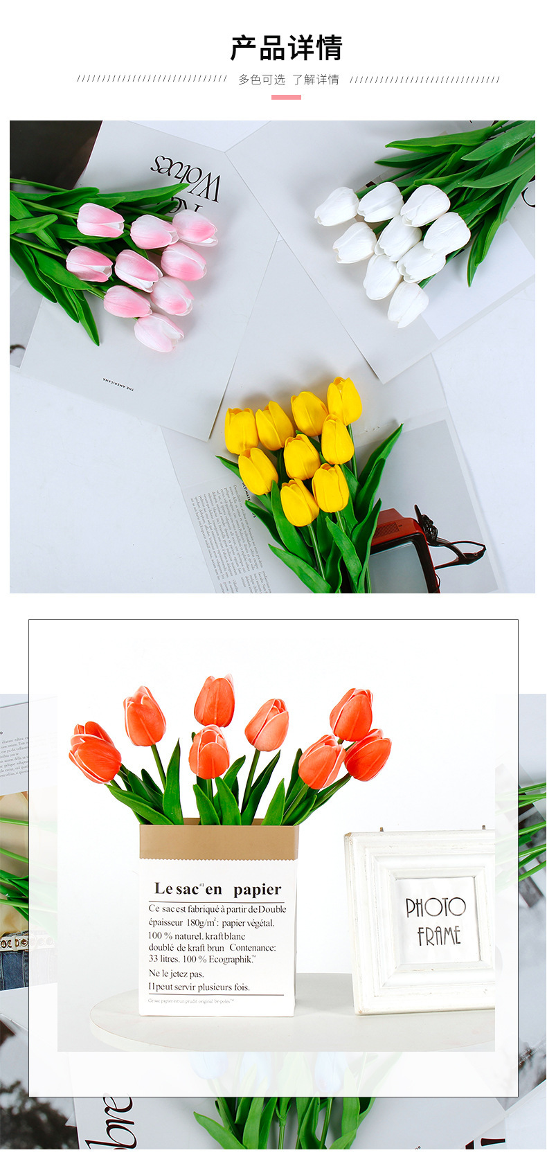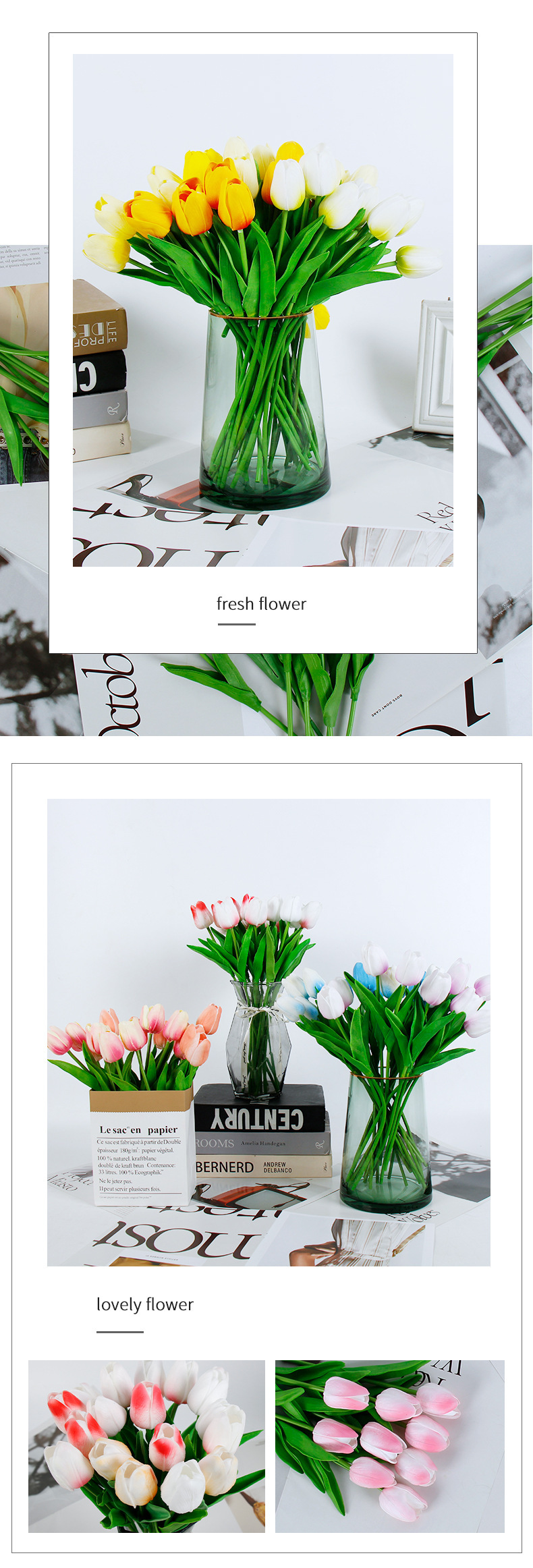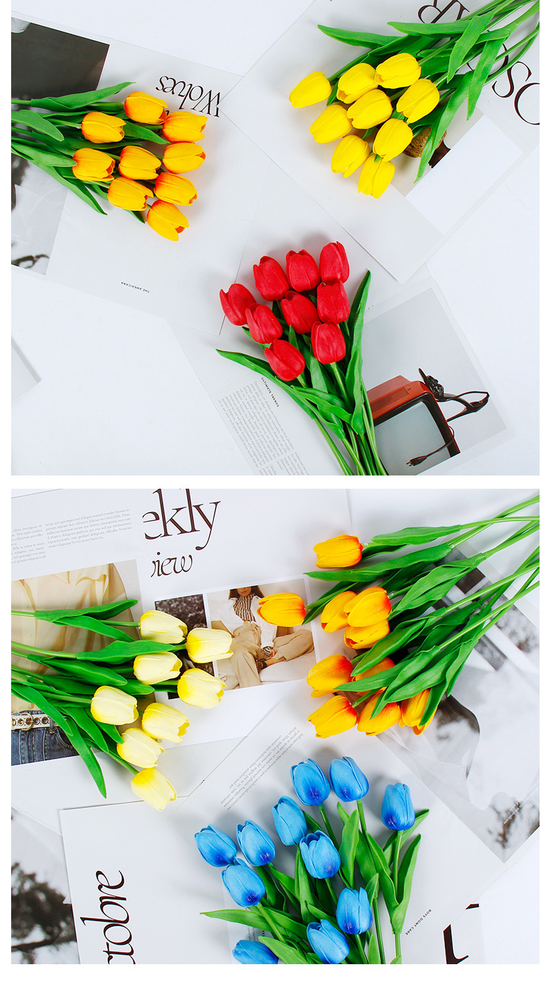 Mini tulipán flor artificial sensación húmeda Adornos de disparo avanzados Decoración del hogar Flores falsas Ramo de flores secas Ventas directas de fábrica