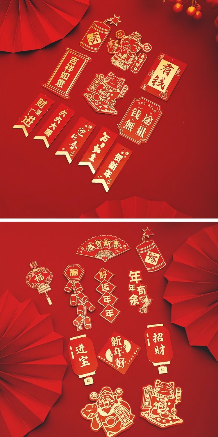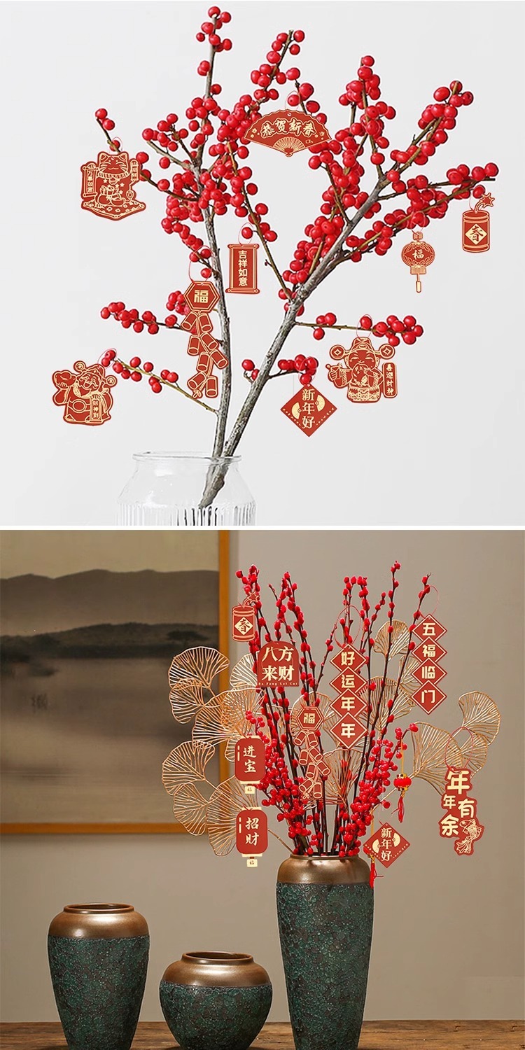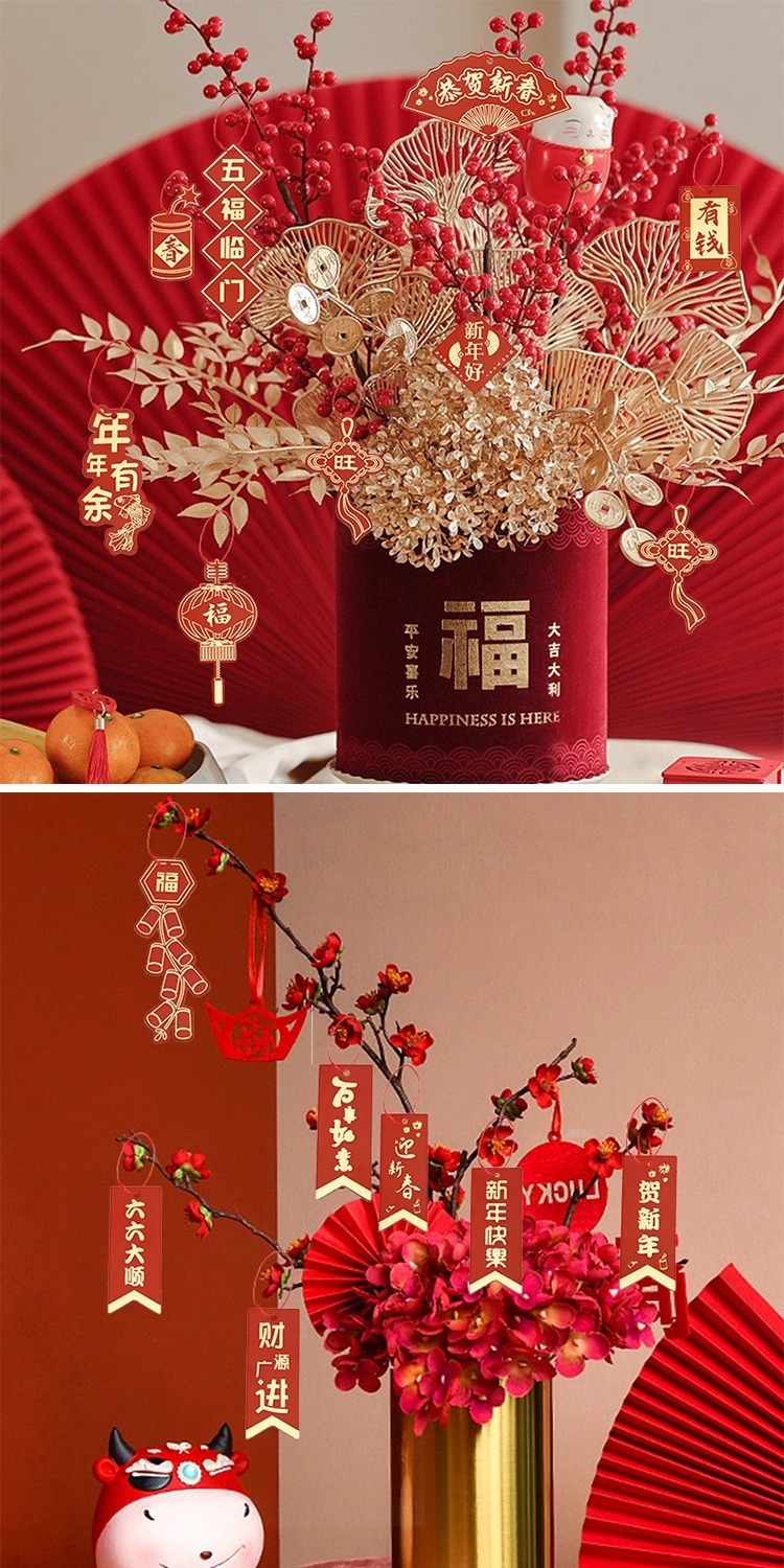Fiesta de Año Nuevo Colgante de flores Pequeña tarjeta de suspensión Festival de Primavera Año Nuevo Planta verde de sauce plata en maceta Colgante Decoración de bendición Colgante Rojo