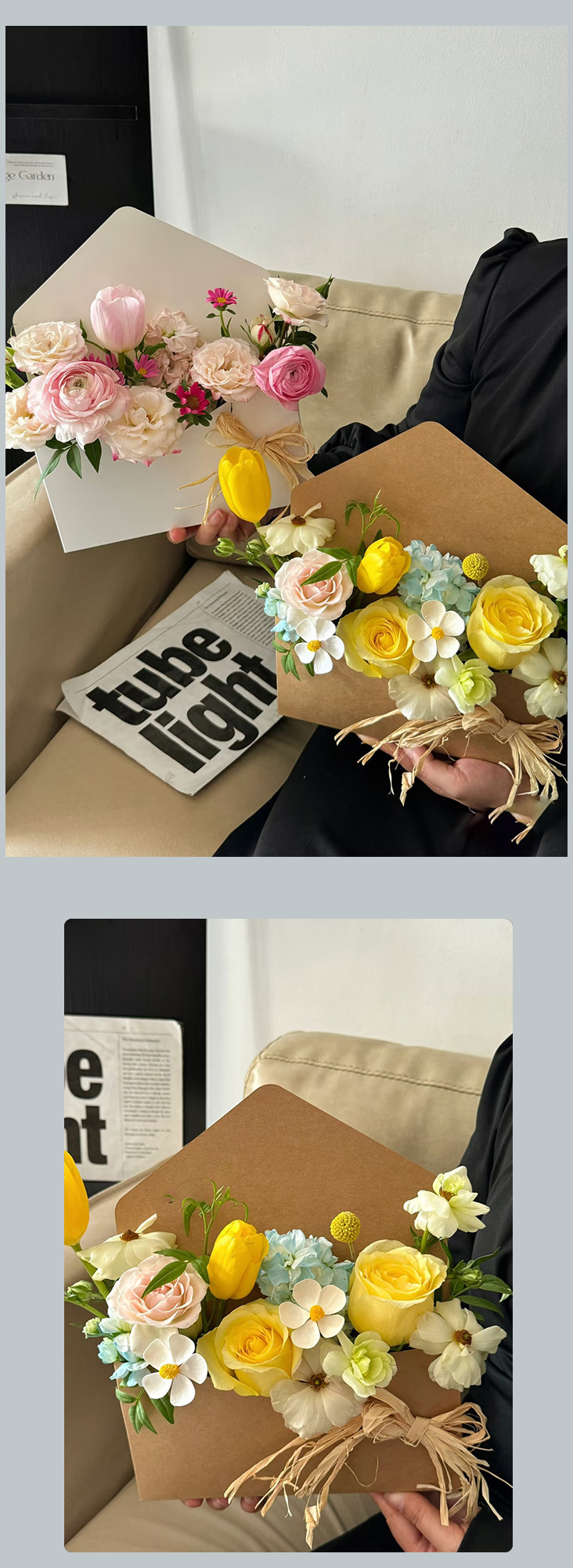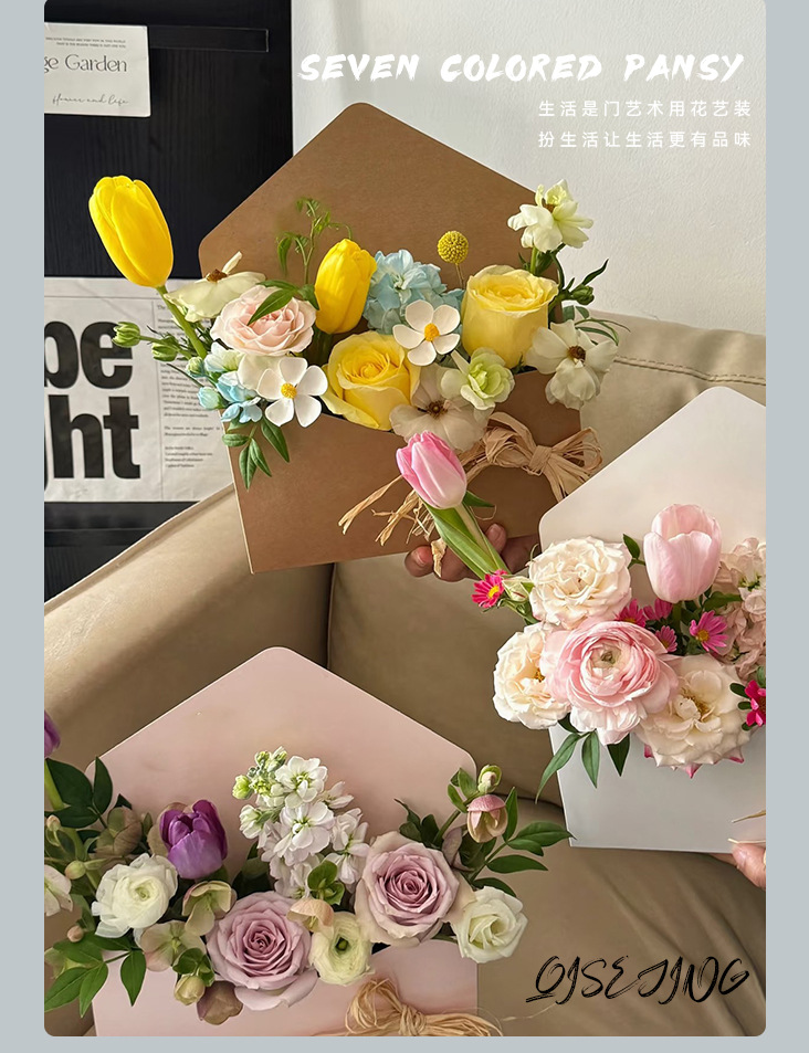 Cuatro colores Cordier otoño sobre caja de flores creativa ramo de flores sobre colorido florista material de flor