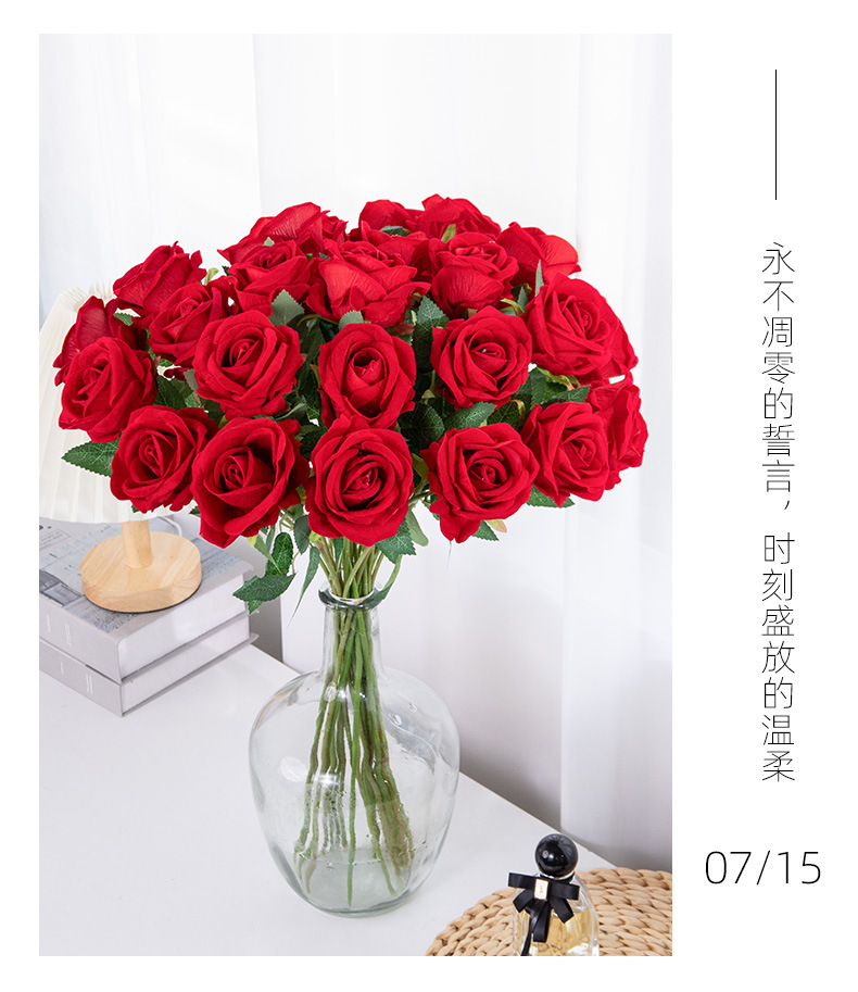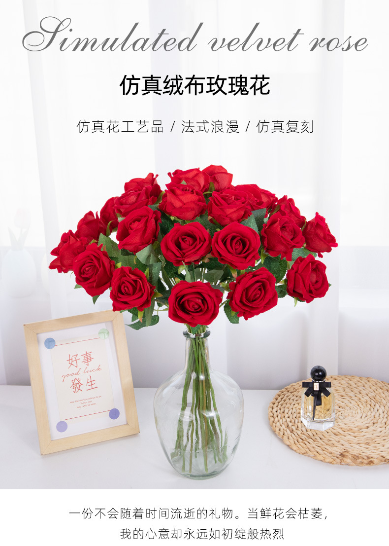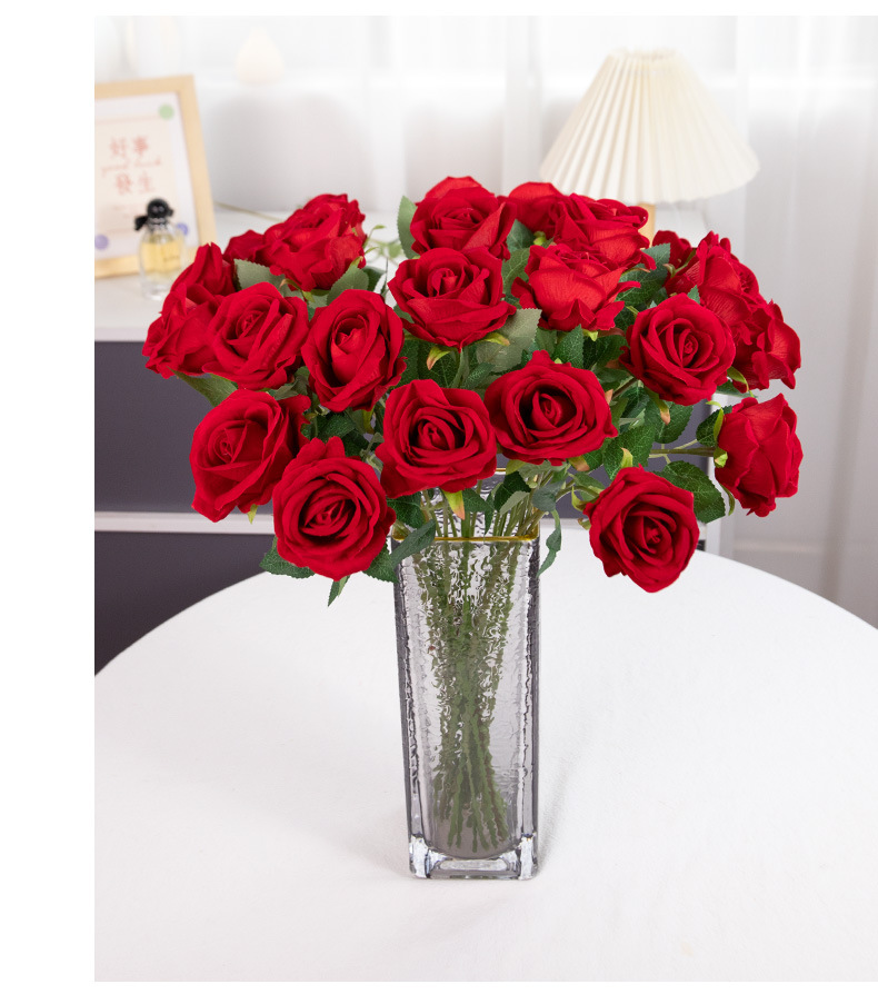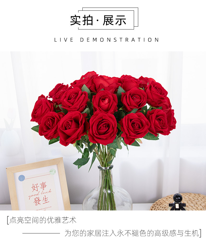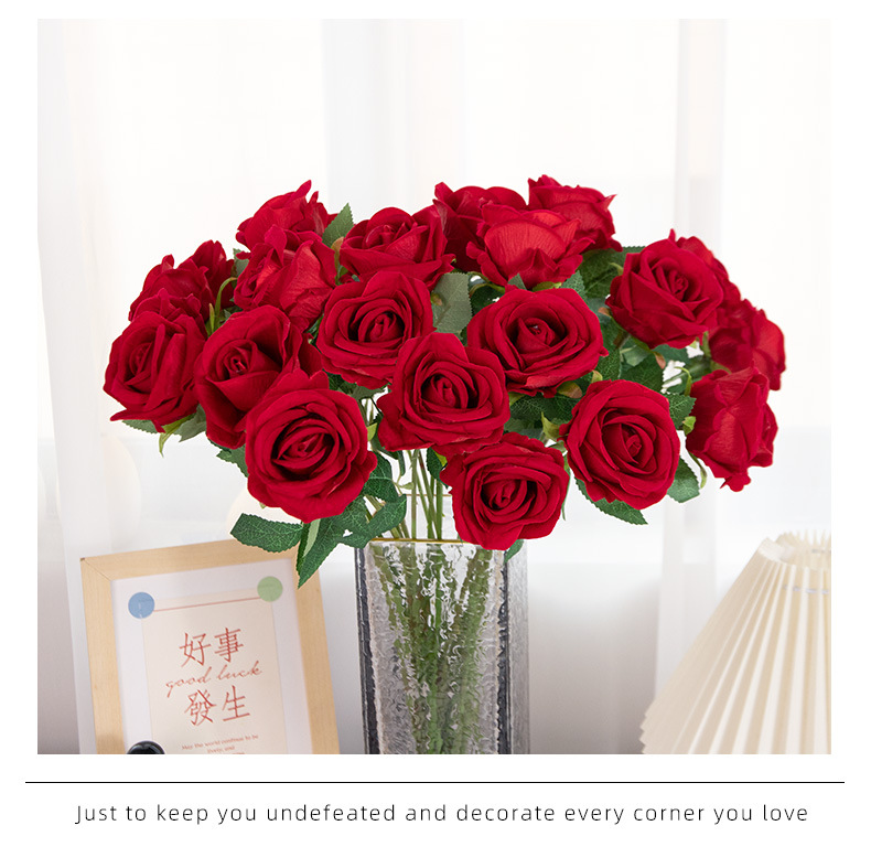 Simulación de flores de rosa de mano única tela de terciopelo cascada pared de flores decoración de boda flores falsas al por mayor