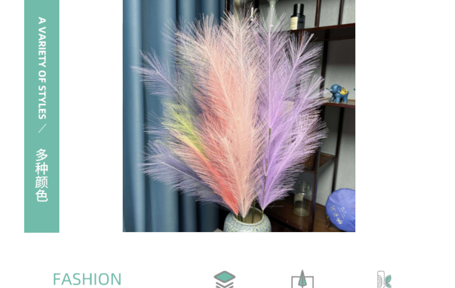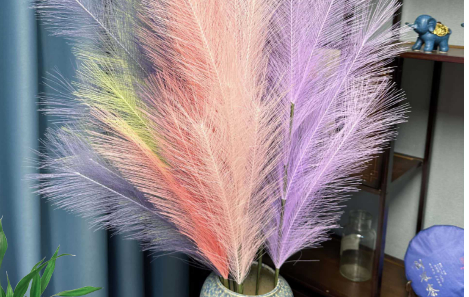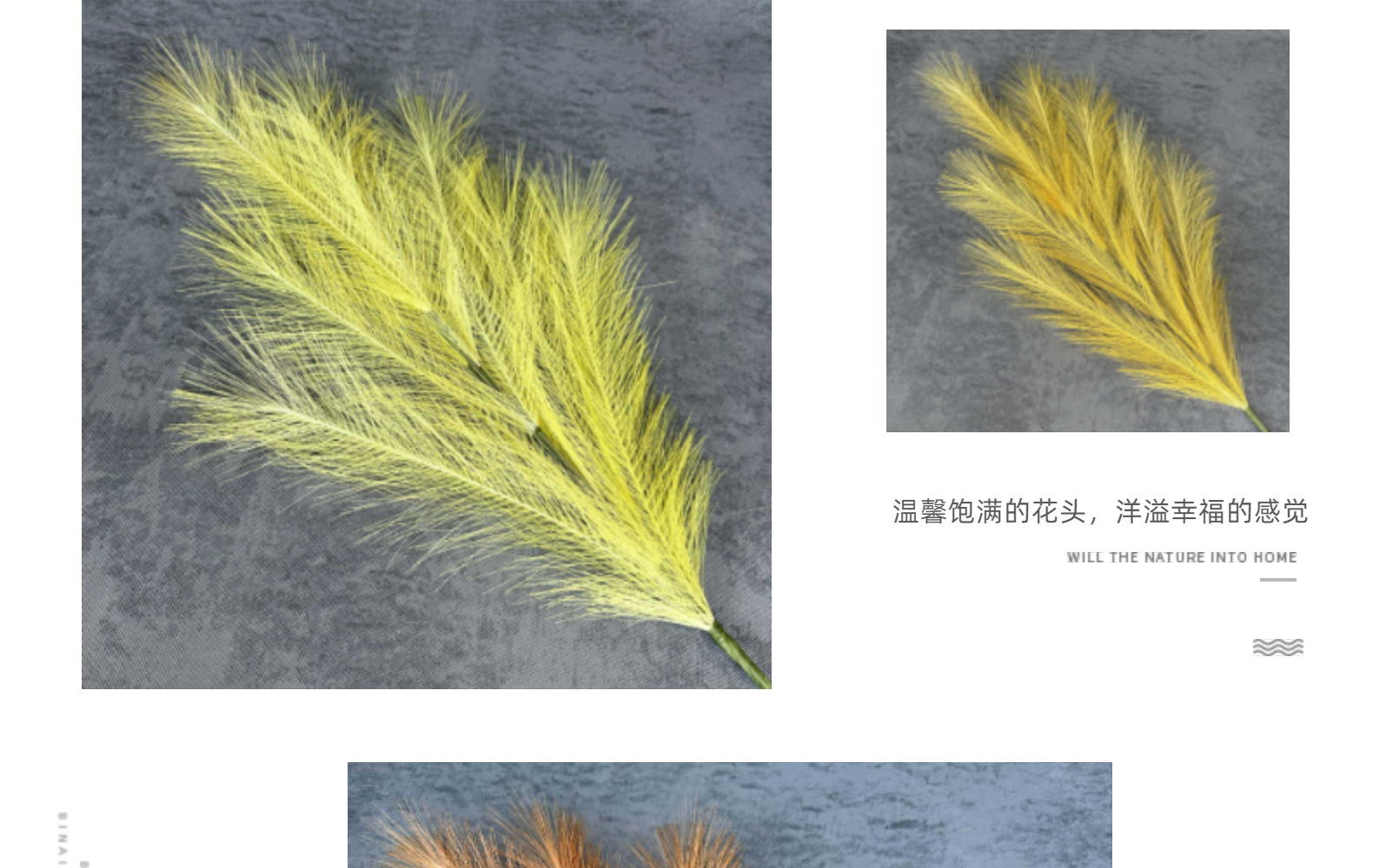 Simulación de 7 horquillas Pluma Flor eterna Decoración de la escena de la boda Decoración del hogar Hierba de junco de colores Decoración de flores falsas al por mayor