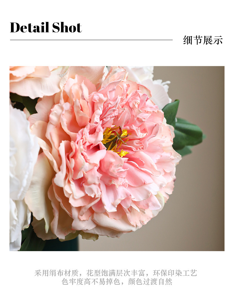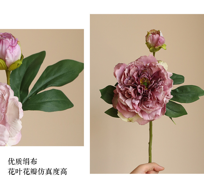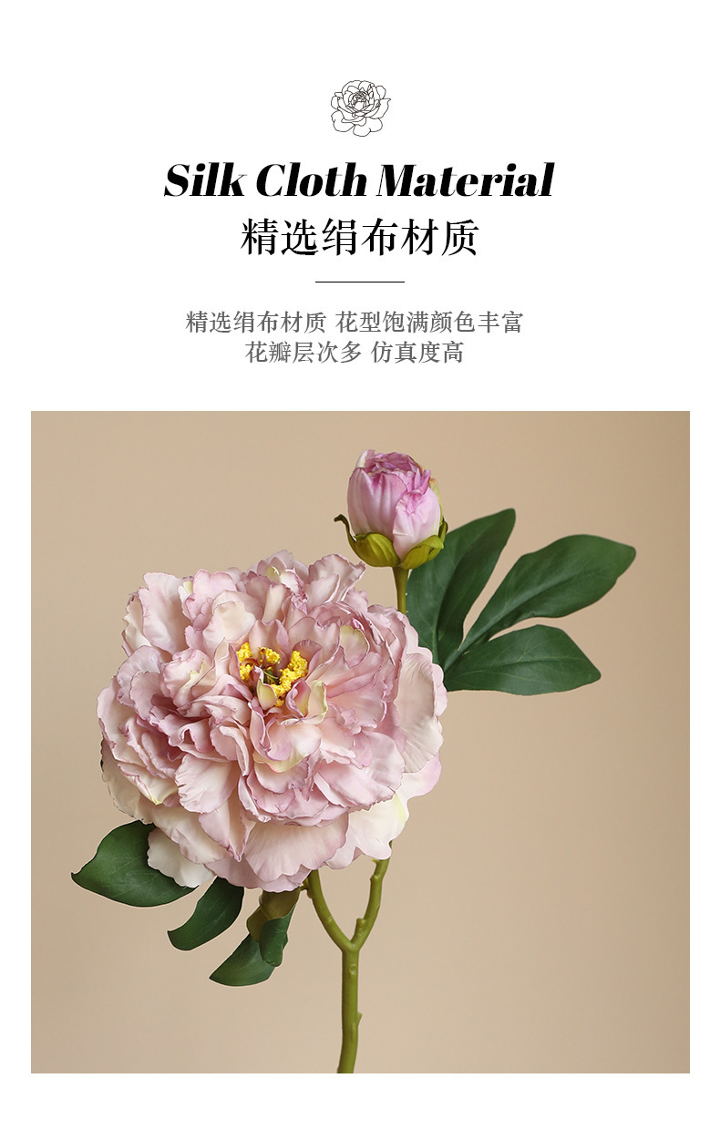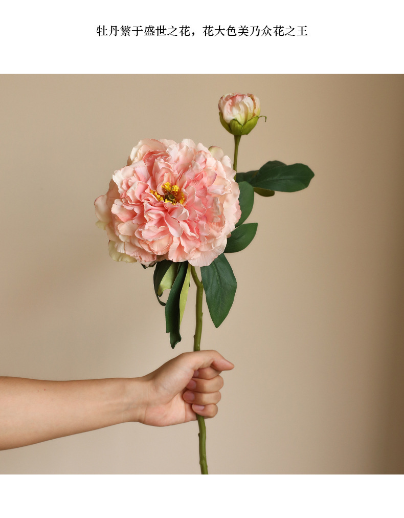 Flores de simulación de 2 flores de peonía de borde de coco, flores de loto falsas, decoración de escritorio de la casa nórdica, pintura al óleo de peonía falsa