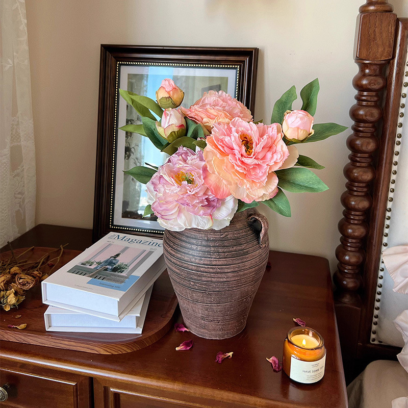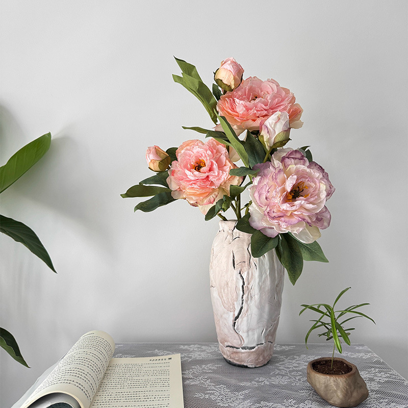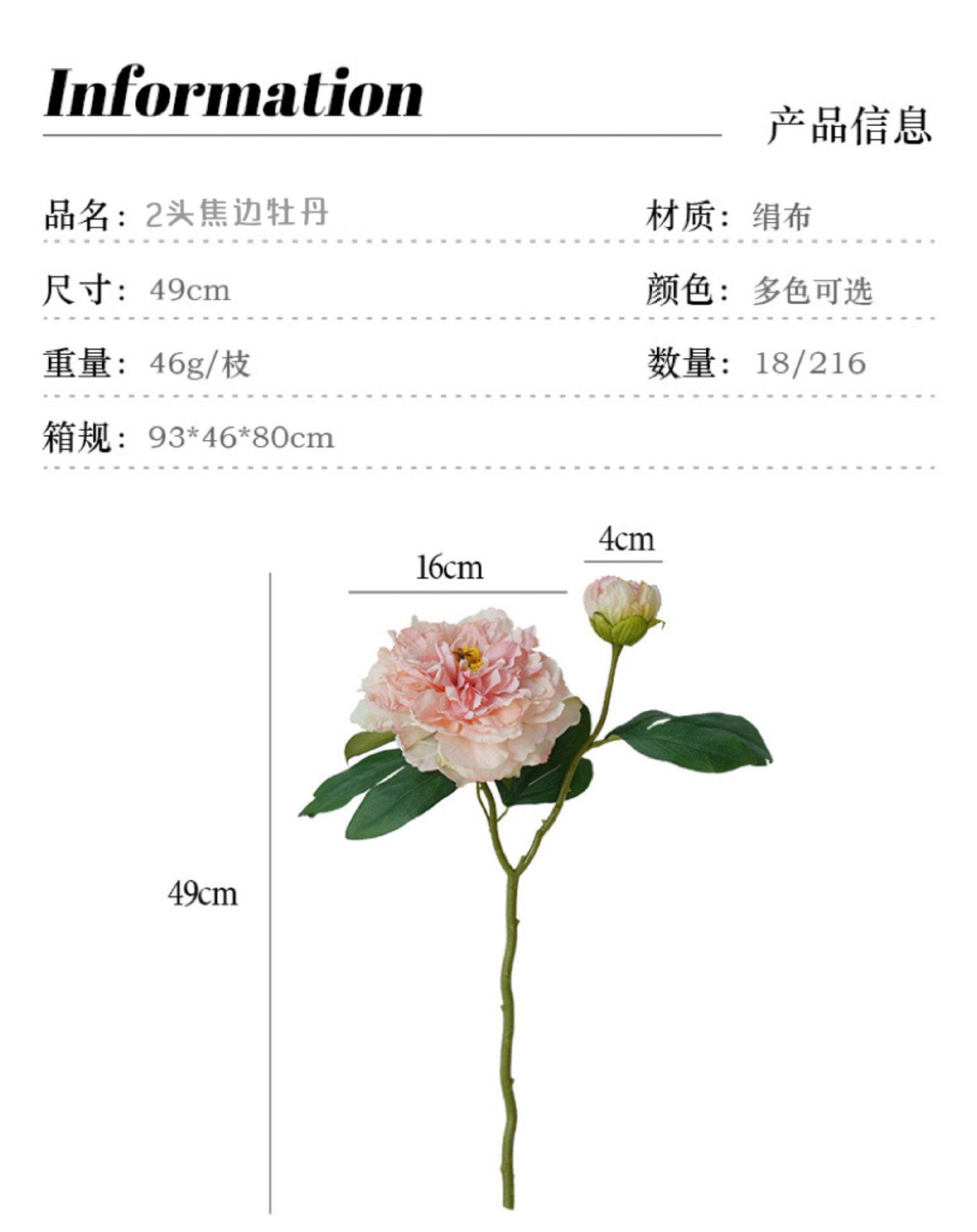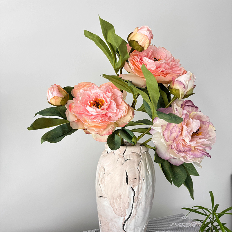 Flores de simulación de 2 flores de peonía de borde de coco, flores de loto falsas, decoración de escritorio de la casa nórdica, pintura al óleo de peonía falsa