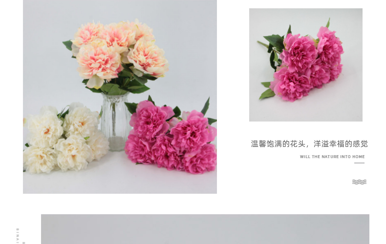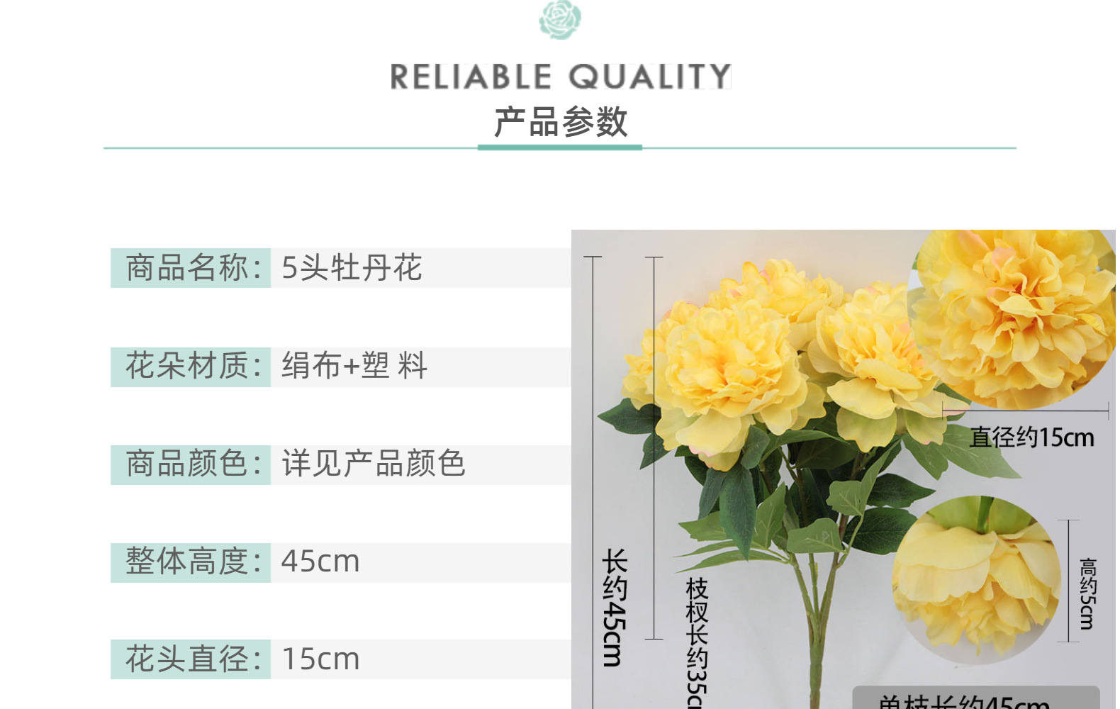 Artificial grande 5-cabeza Peony Flower Home Dress Up falso flor de la boda de tiro de la flor de seda chino peonía mango paquete al por mayor