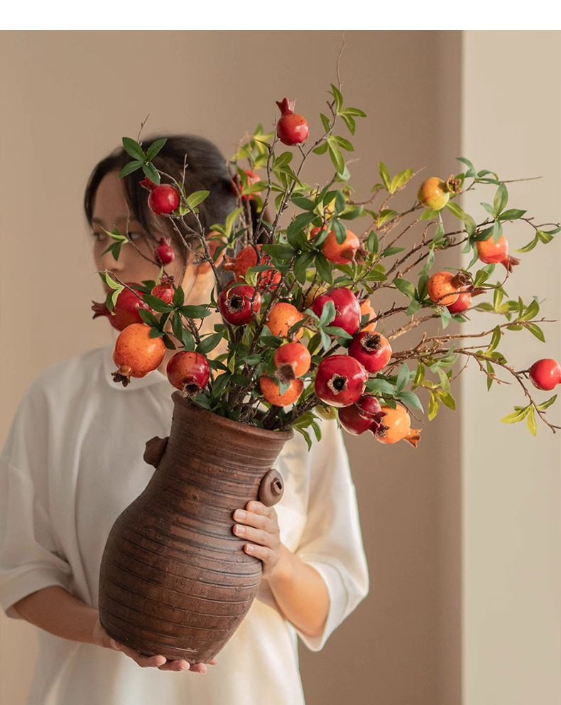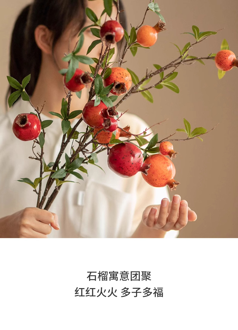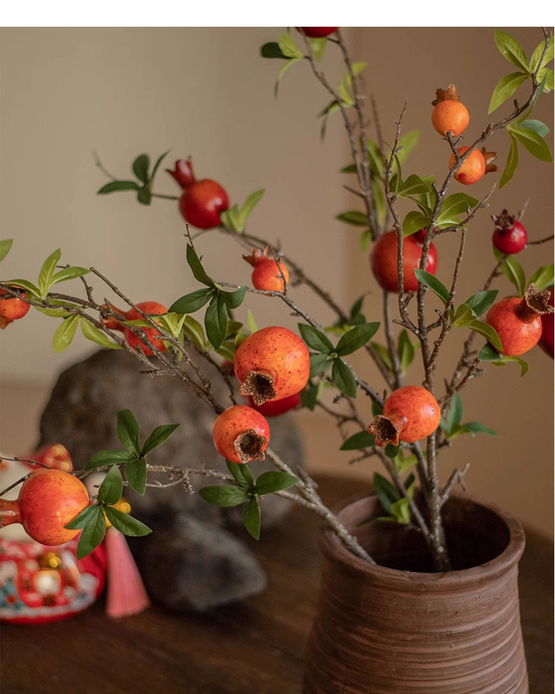 Simulación flor de granada ramas de frutas de espuma suave en el hogar flores falsas ramas de flores largas decoración ornamentos de flores