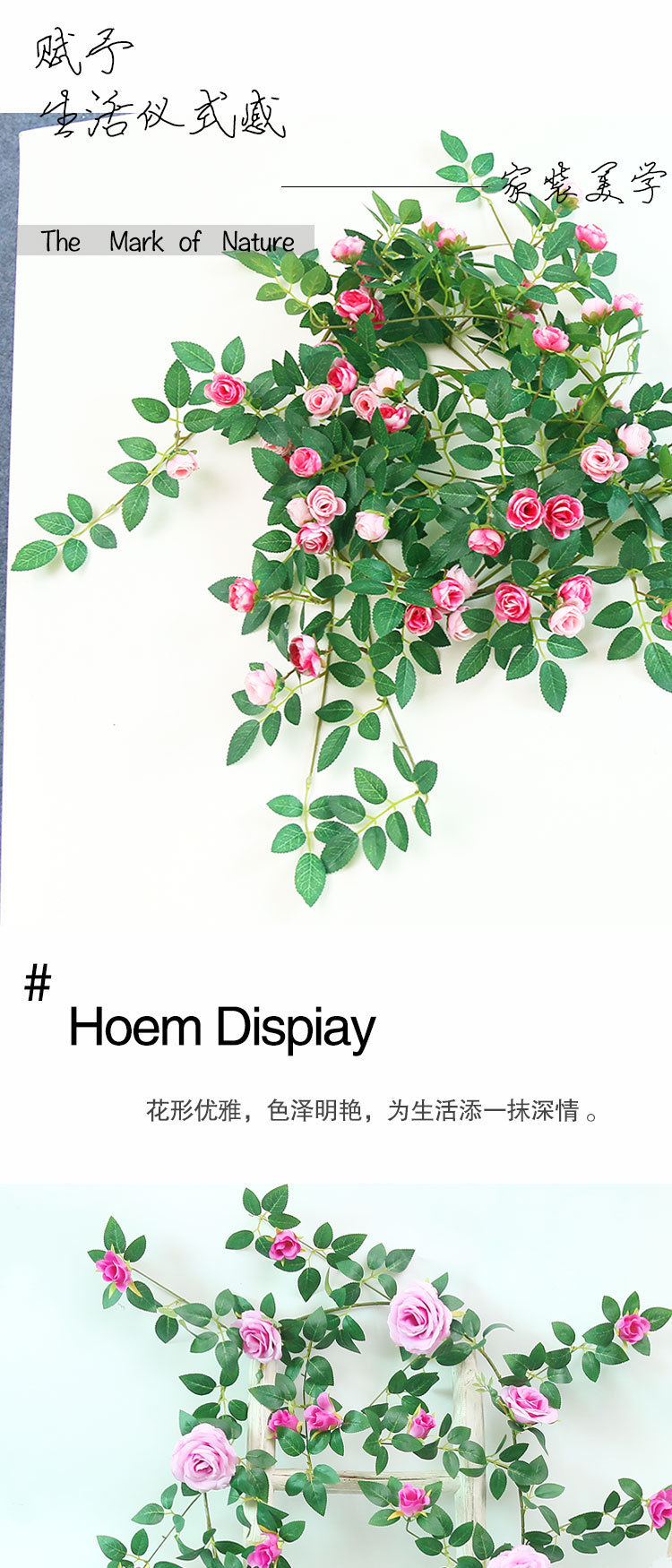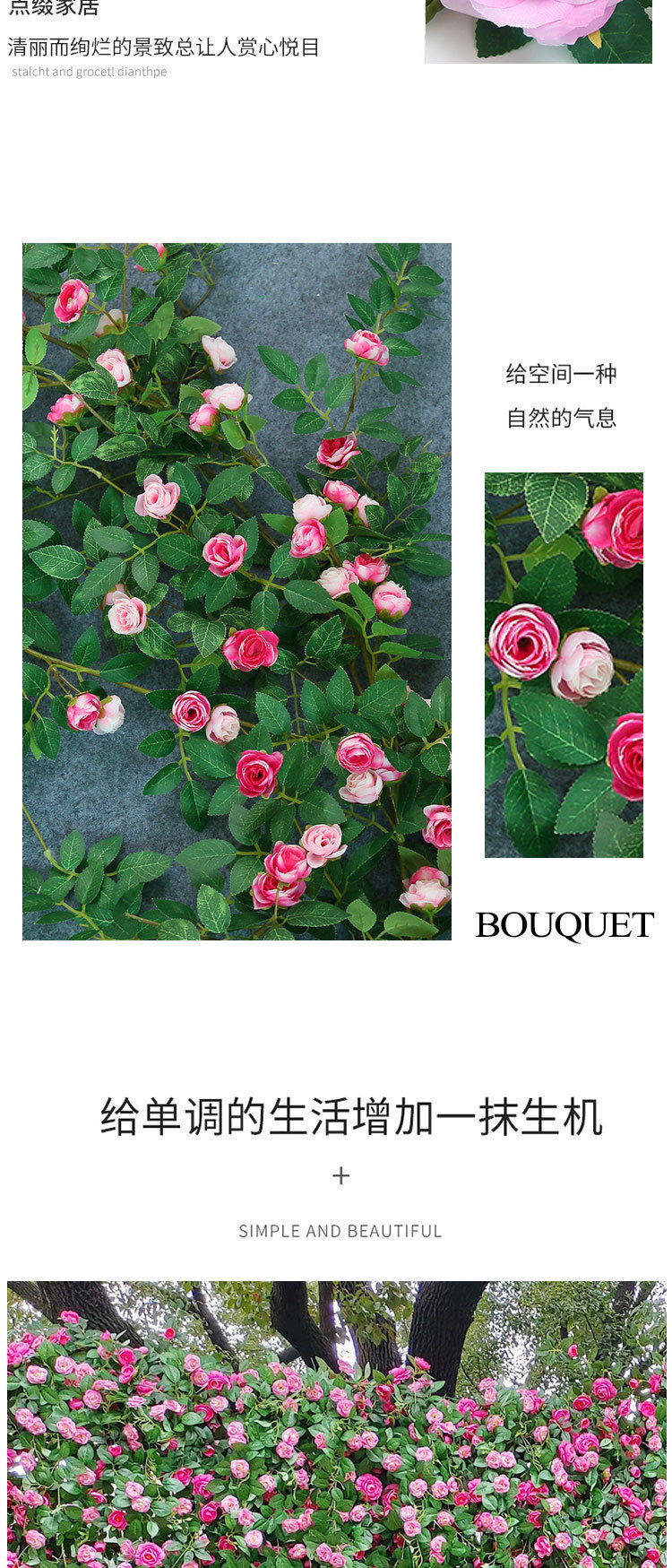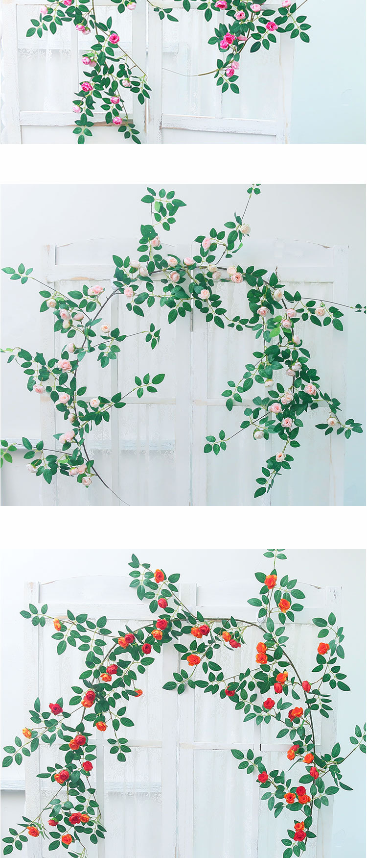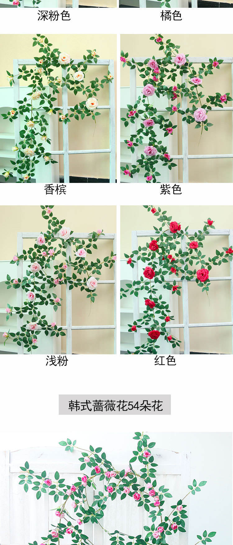 Simulación de vid de plástico rosa boda ventana de la casa floral enredada vid decoración pared red imitación fondo de plantación
