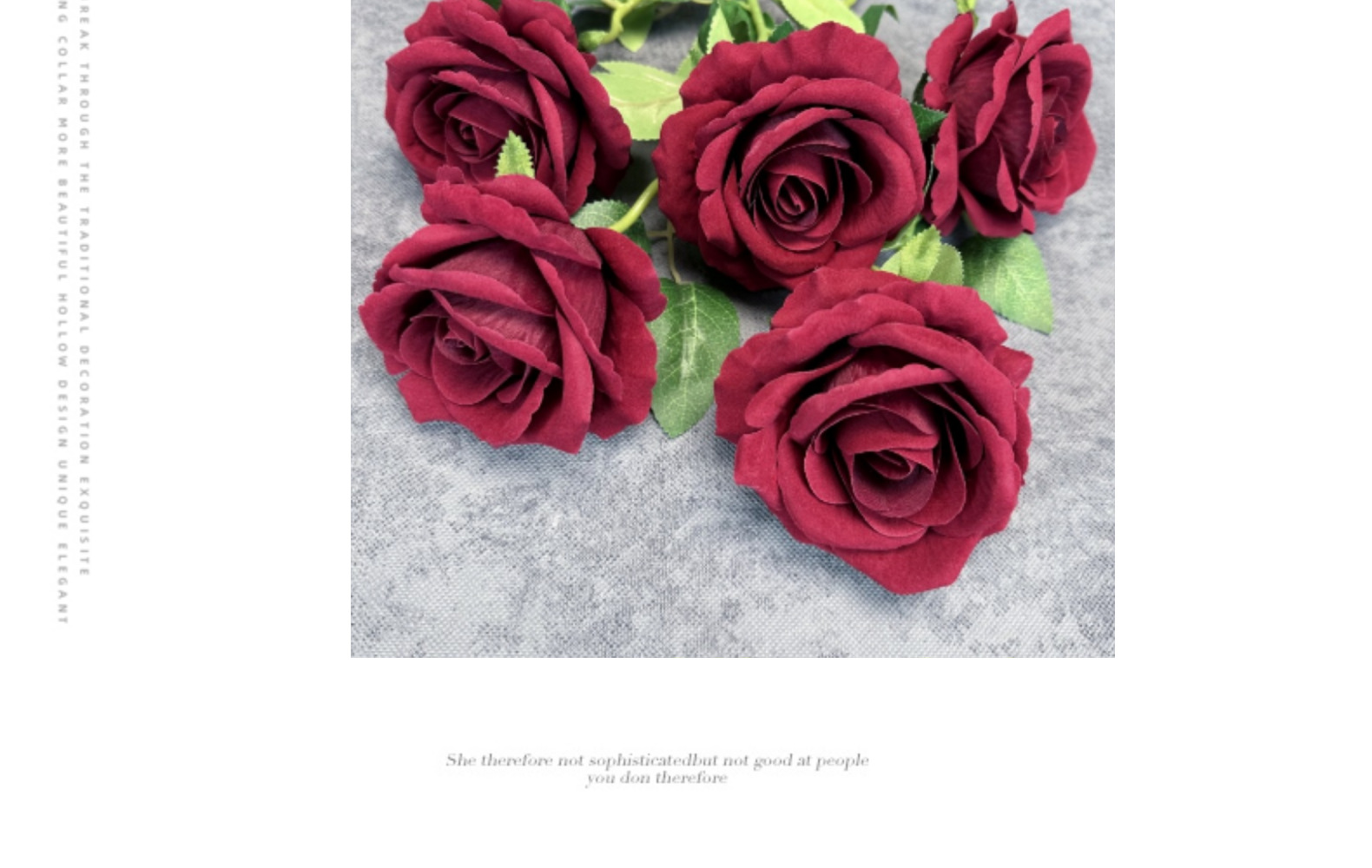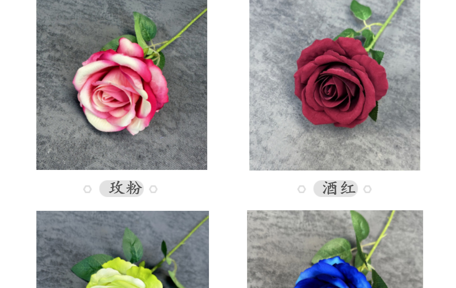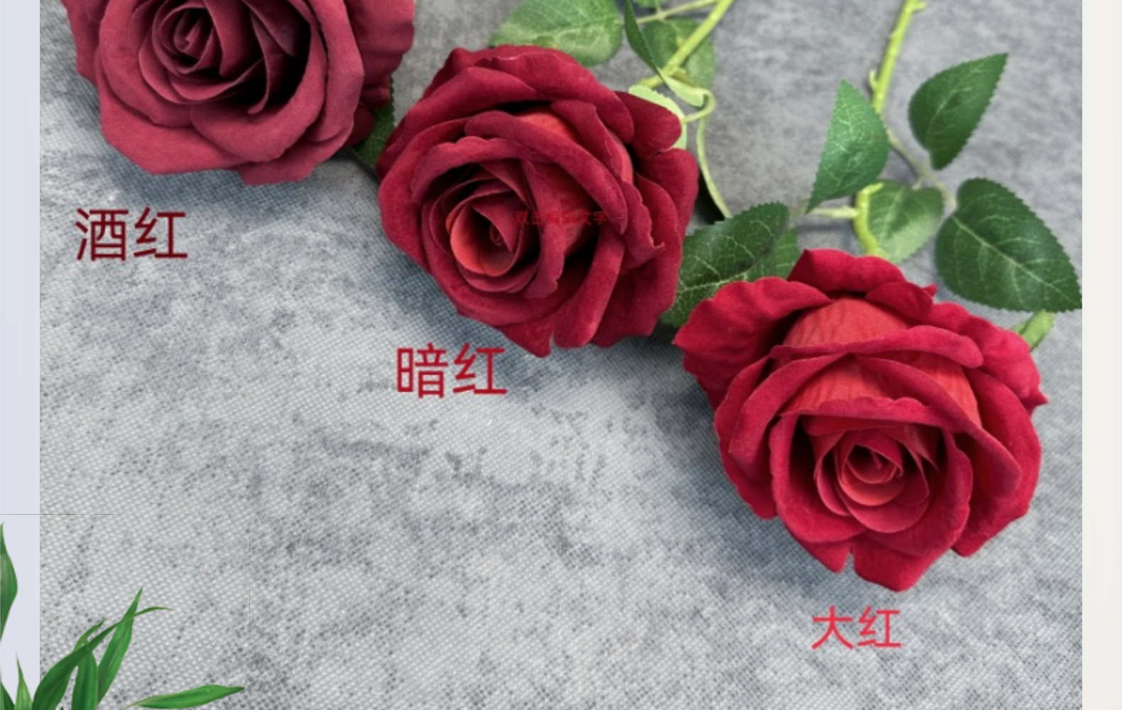 | Color | Rojo vino, rojo fuerte, rojo oscuro, blanco, azul, rosa, verde, rosa oscura, rosa, amarillo, rosa, coral, champán |