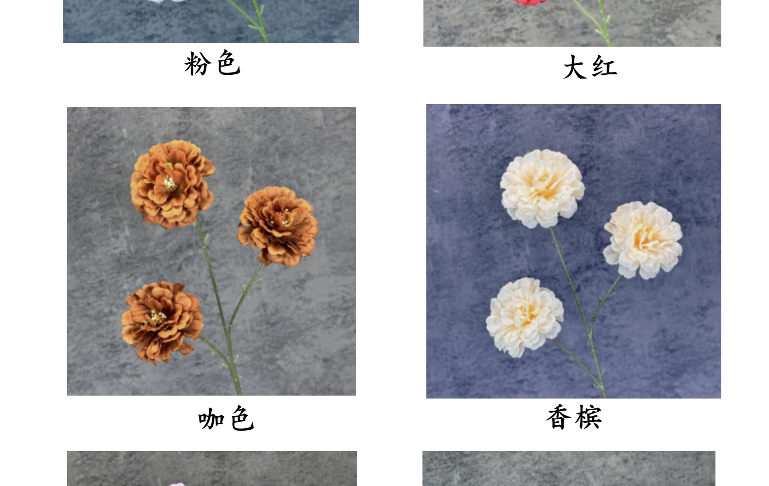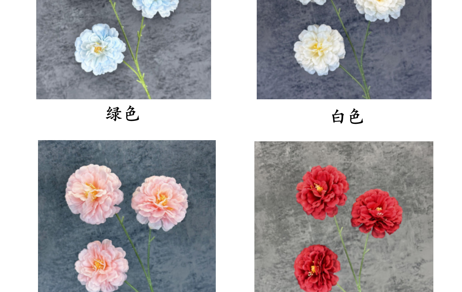 | Color | Blanco, rojo, azul de niebla, rosa, púrpura pálido, champán, curry, naranja, verde, rosa |