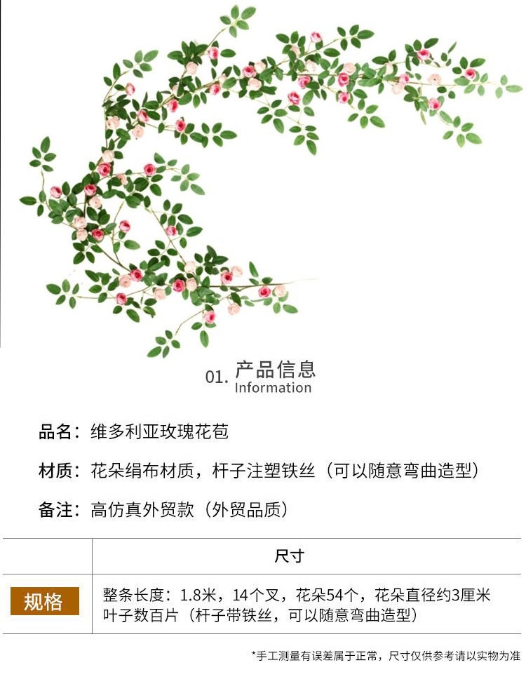 Simulación de vid de rosa rosa rosa vid de plástico techo colgante de aire acondicionado tubería de agua de sombra decoración de balcón