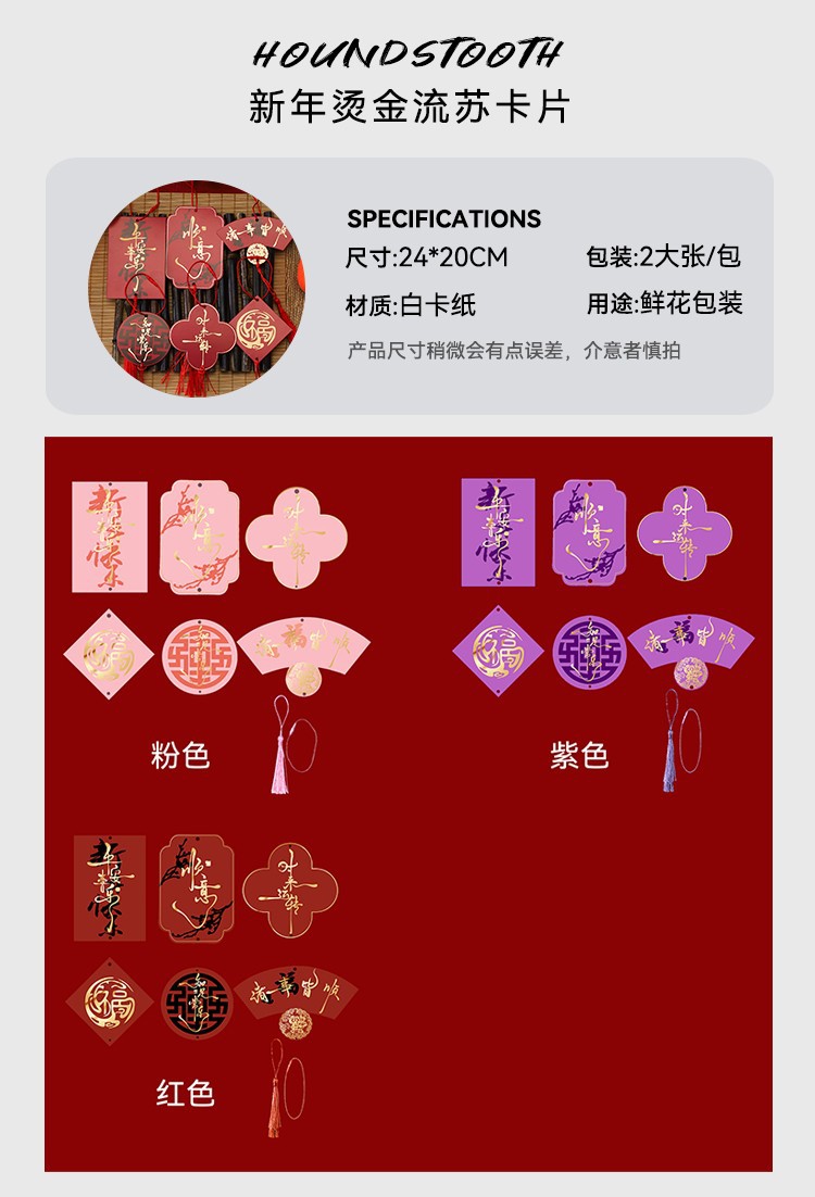 Año Nuevo de siete colores Cordier National Tide tarjeta de bordillo de oro tarjeta de bocadilla de Año Nuevo tarjeta de papel DIY ramo de flores tarjeta de papel embalaje de flores