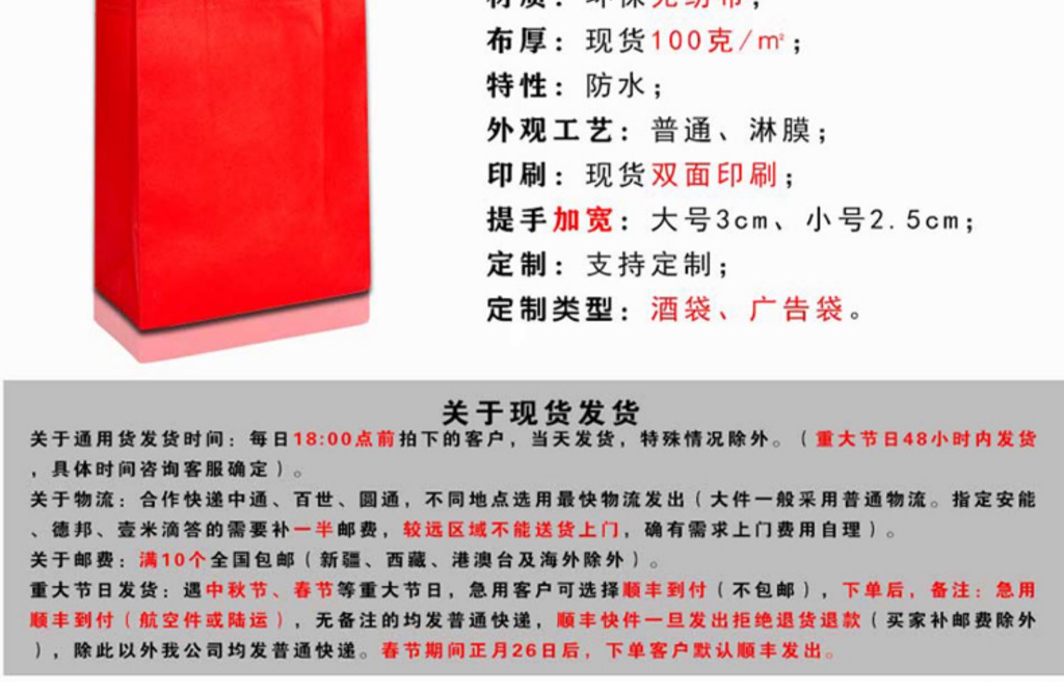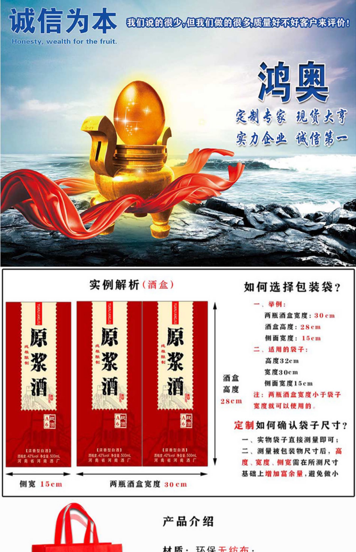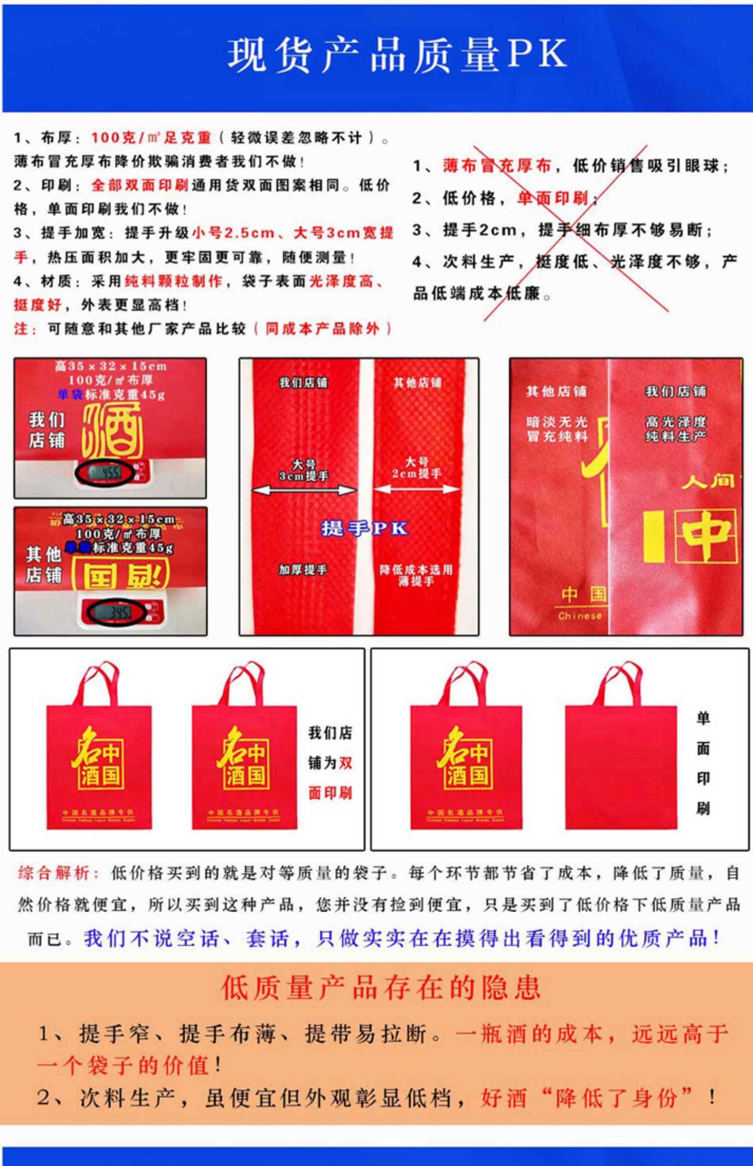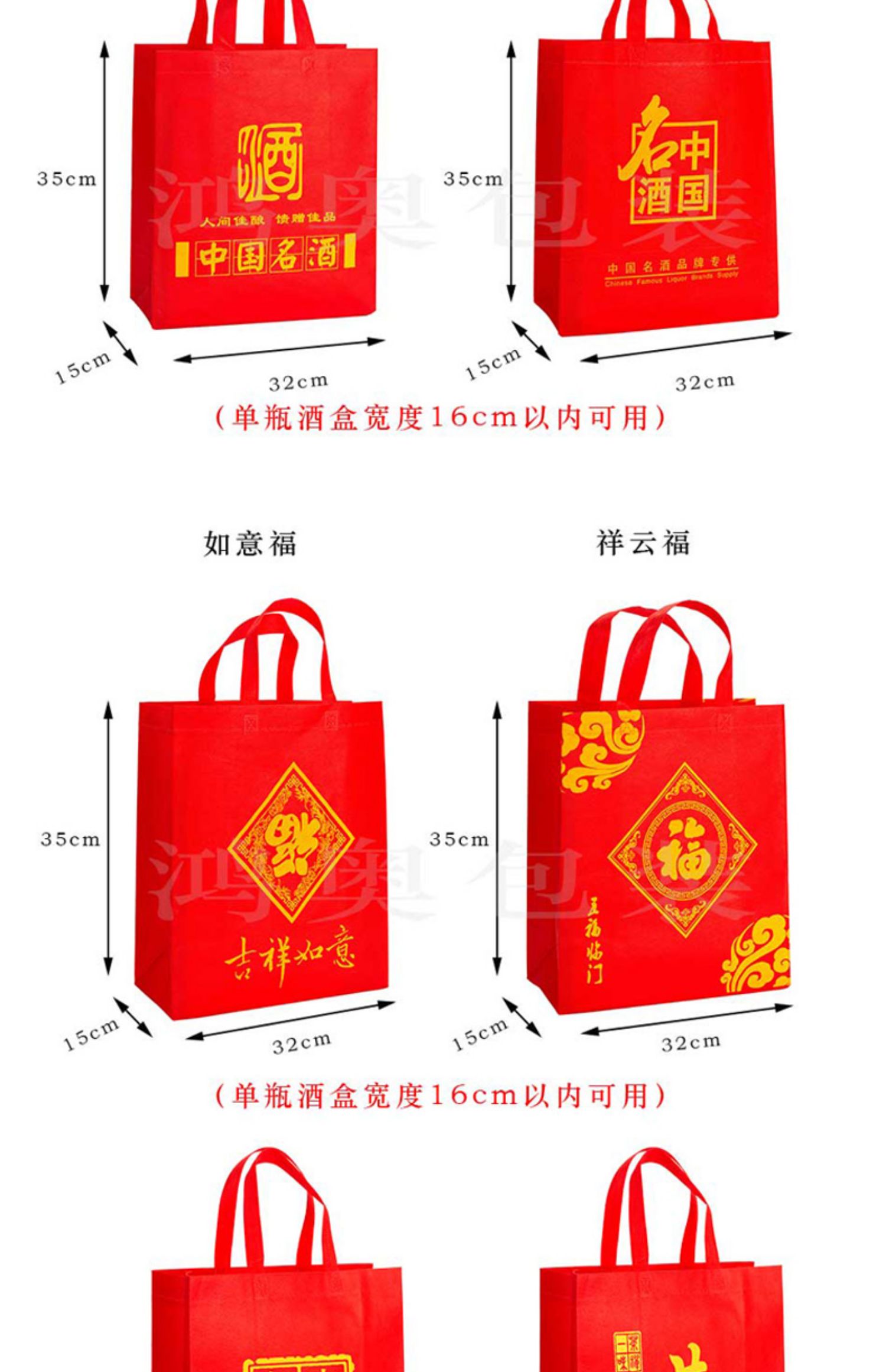 Bolsa de licor no tejido hecha a medida botella única Fu Zi bolsas de cigarrillos personalizadas rojas bolsas de regalo de té lote