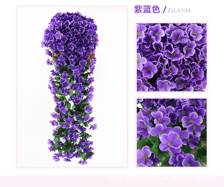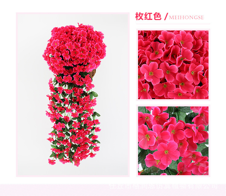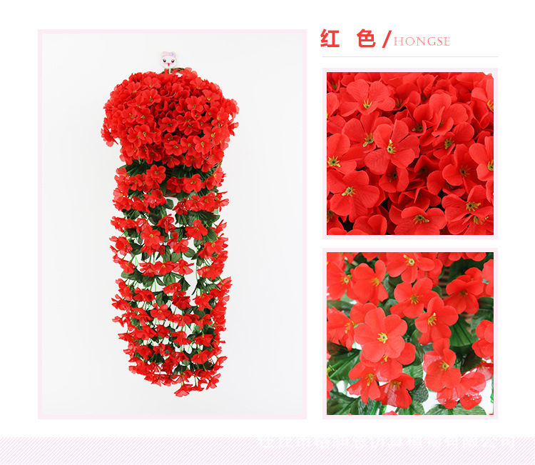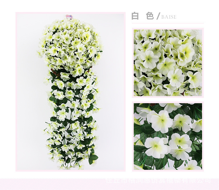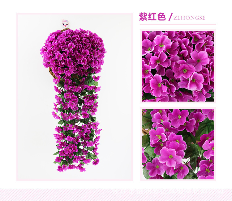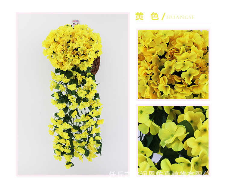 Simulación violeta boda enredadera araña colgante de pared flor de seda ventana decoración de balcón 18 hortensias flores falsas ratán
