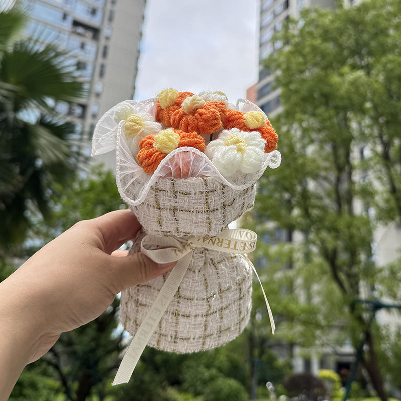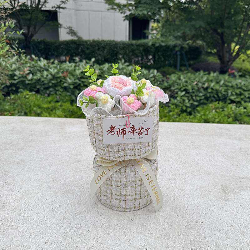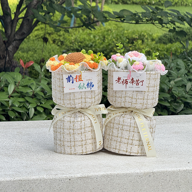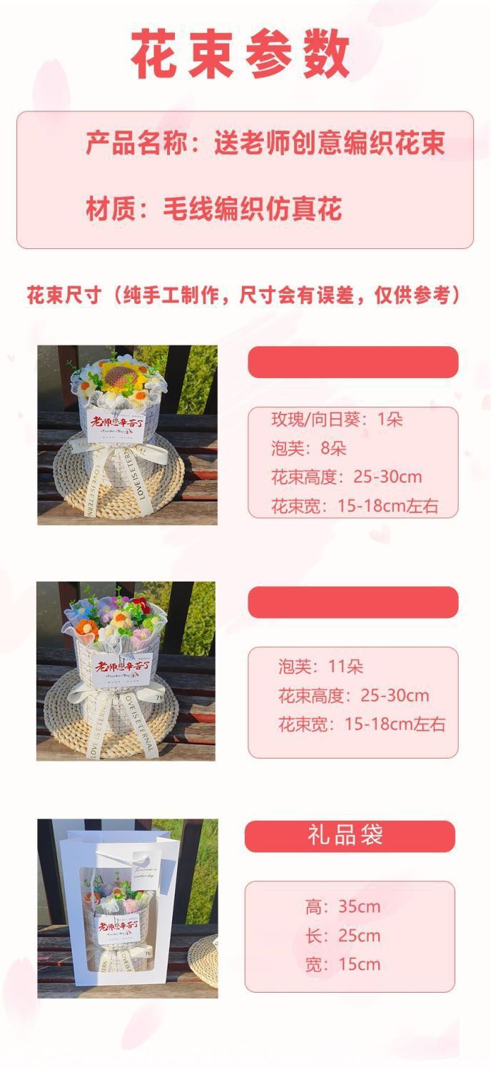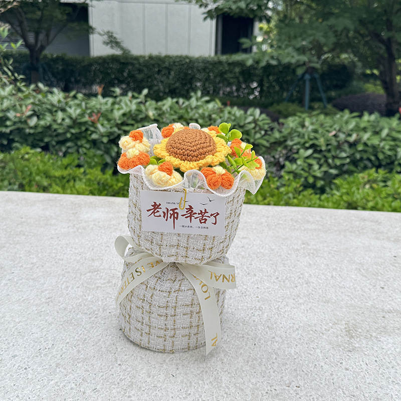 2025 Día del Maestro Regalos creativos para maestros girasol de lana tejido a mano de graduación ramo de flores terminado de San Valentín