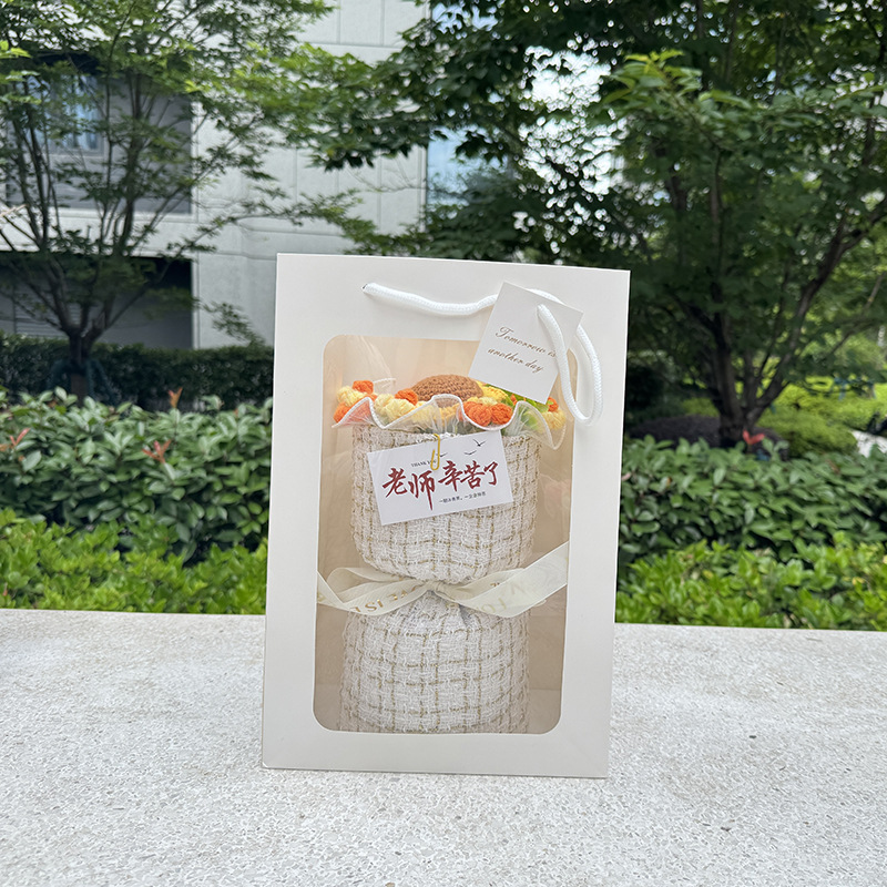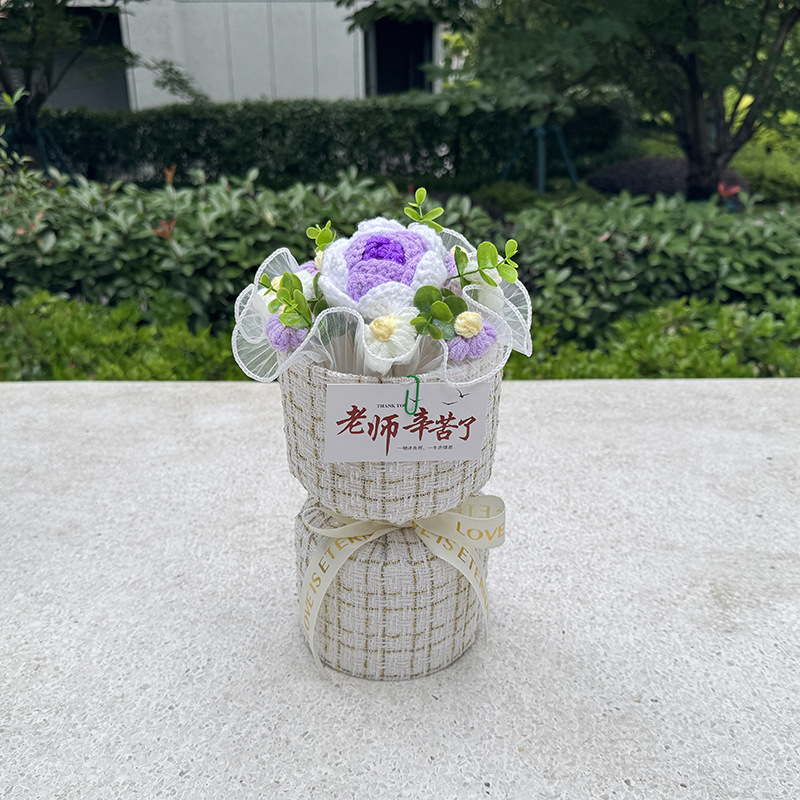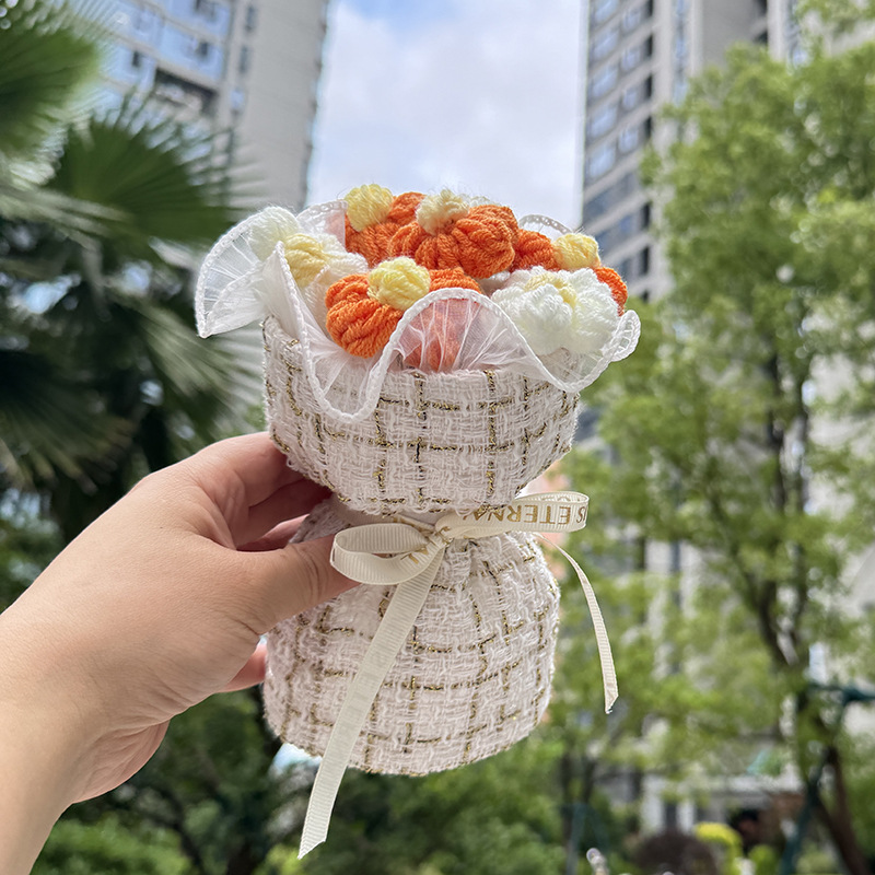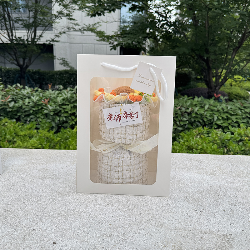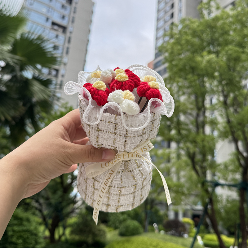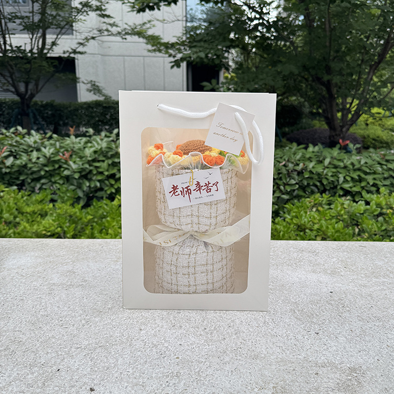 2025 Día del Maestro Regalos creativos para maestros girasol de lana tejido a mano de graduación ramo de flores terminado de San Valentín