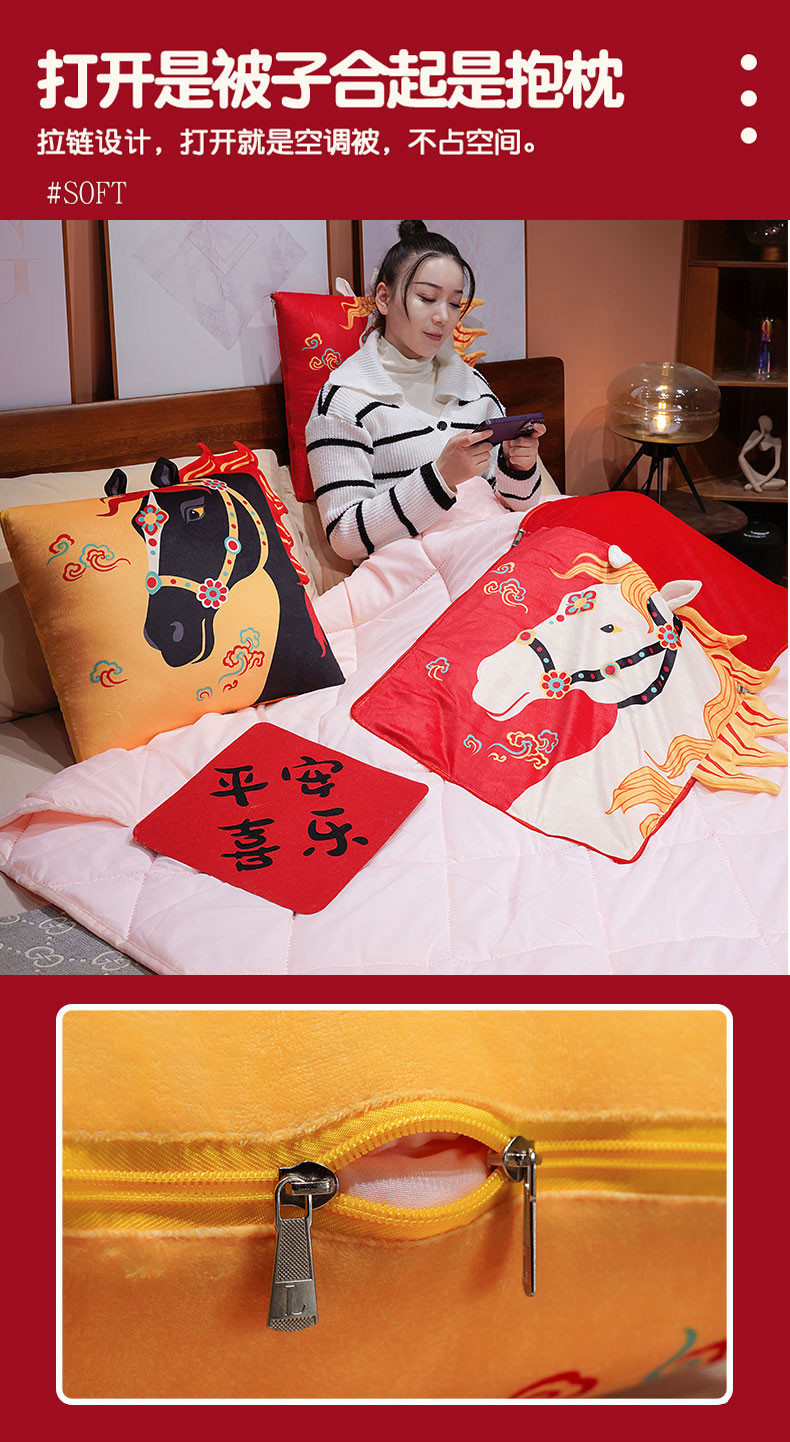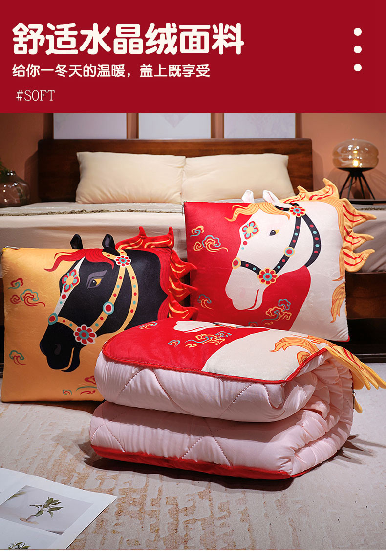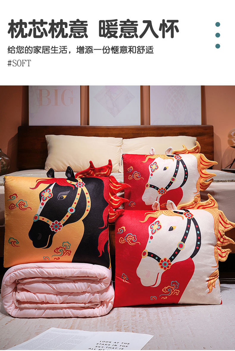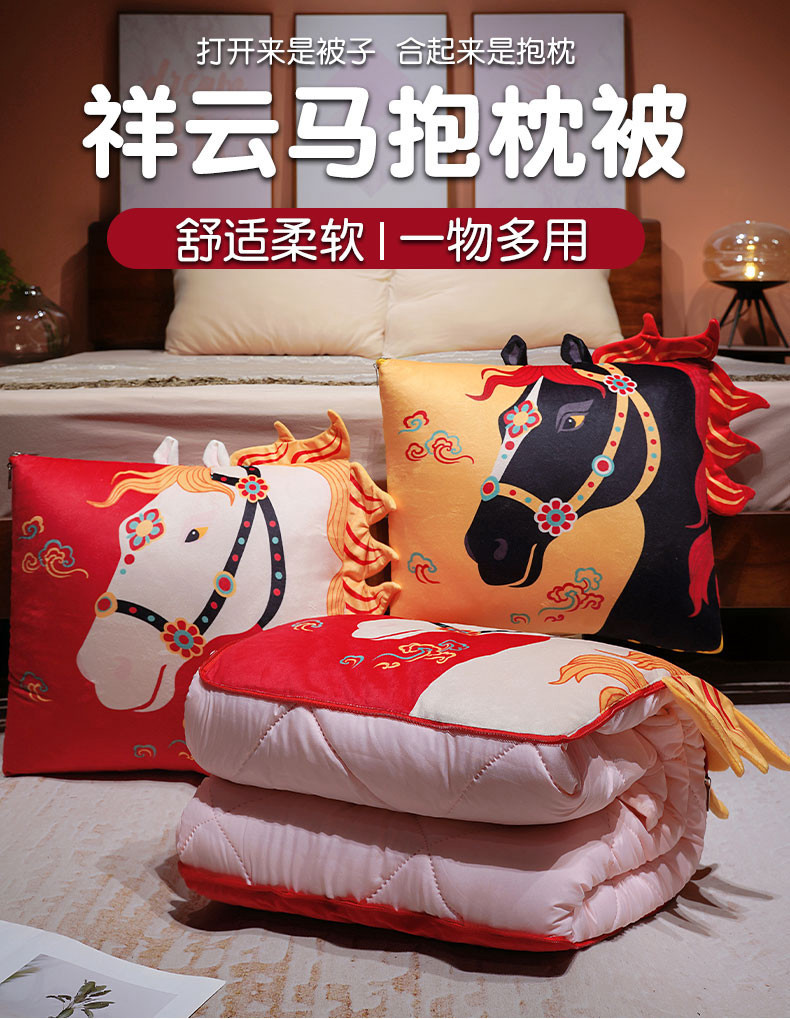 2026 Año del Caballo mascota juguete de peluche estilo de marea estampado caballo mascota almohada es 2 en un regalo de reunión