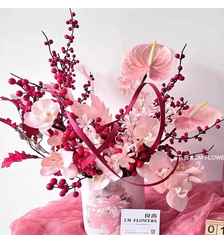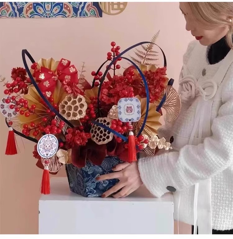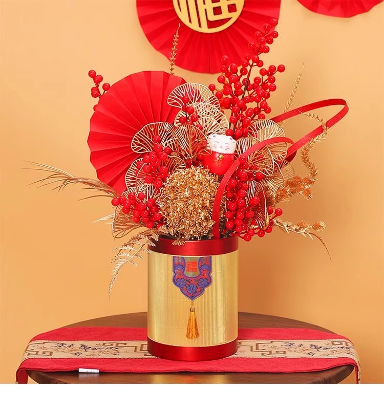 Año Nuevo de siete colores cordier flores de decoración de barril con arquitectura creativa floral modelado con material de cinta creativa