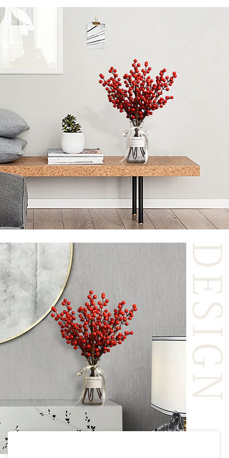 Fortuna fruta pequeña flor de fruta roja fruta acebo planta verde decoración sala de estar flor falsa casa nueva planta casa Decoración
