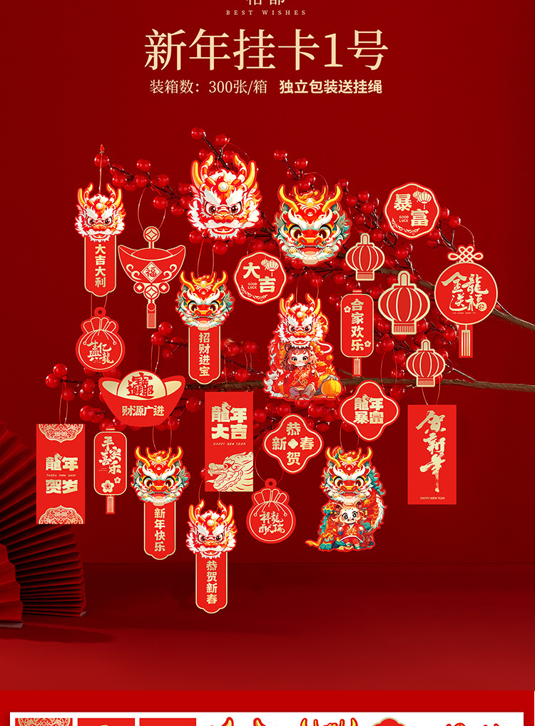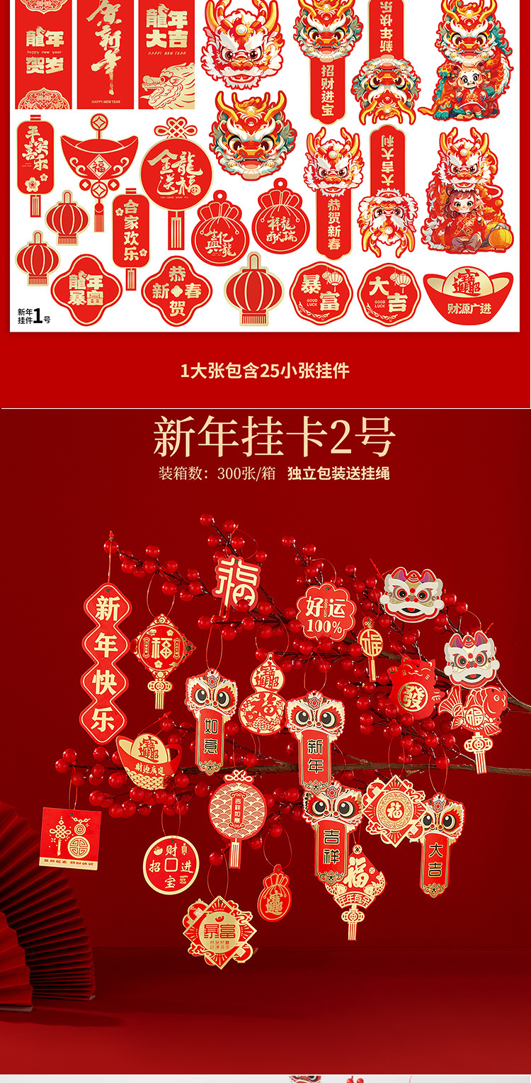 | Color | N ° 1 Tarjeta colgante de Año Nuevo-25 hojas pequeñas con cuerda colgante,N ° 2 Tarjeta colgante de Año Nuevo-22 pequeña Zhang enviar cuerda colgante,N ° 3 Año Nuevo ascensor-24 Xiao Zhang enviar cabestrillo |