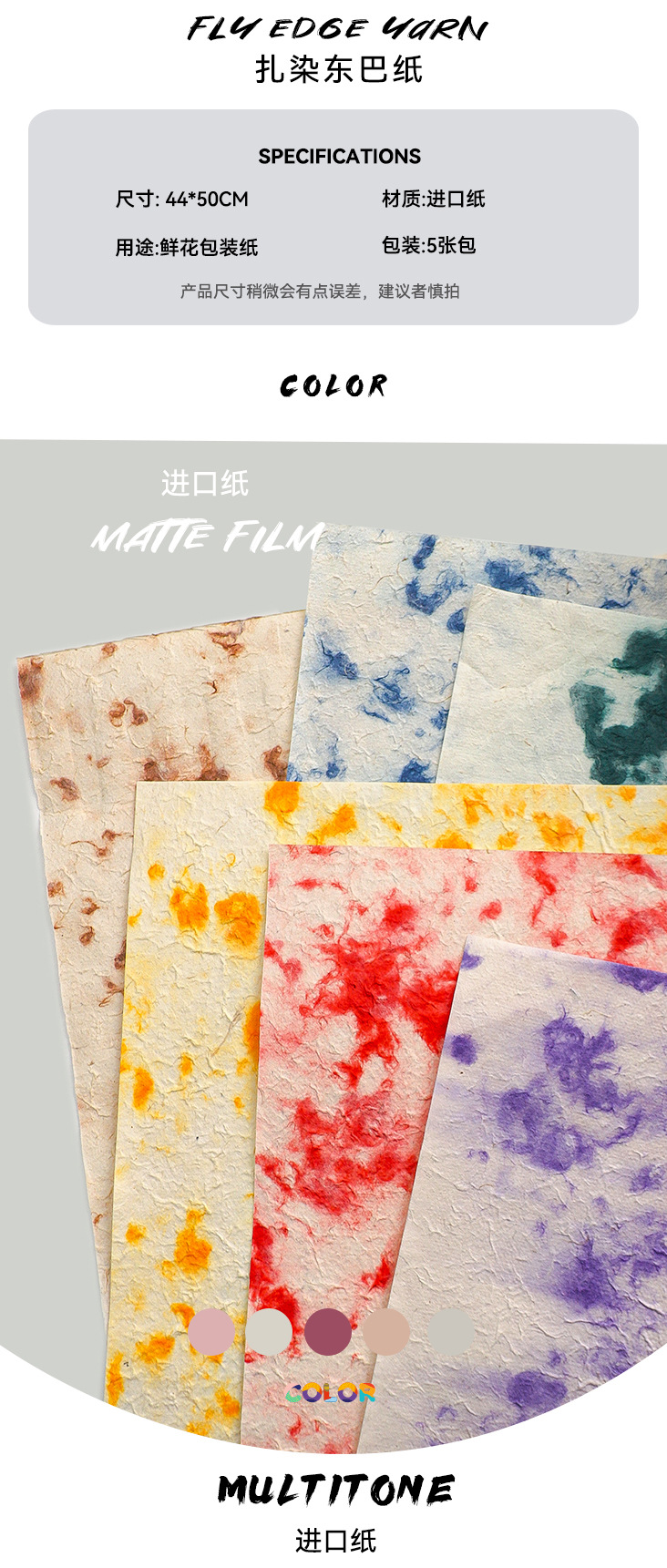 Siete colores cordier tie teñido papel importado Dongba de alta calidad serie de papel embalaje floral florista diy embalaje manual