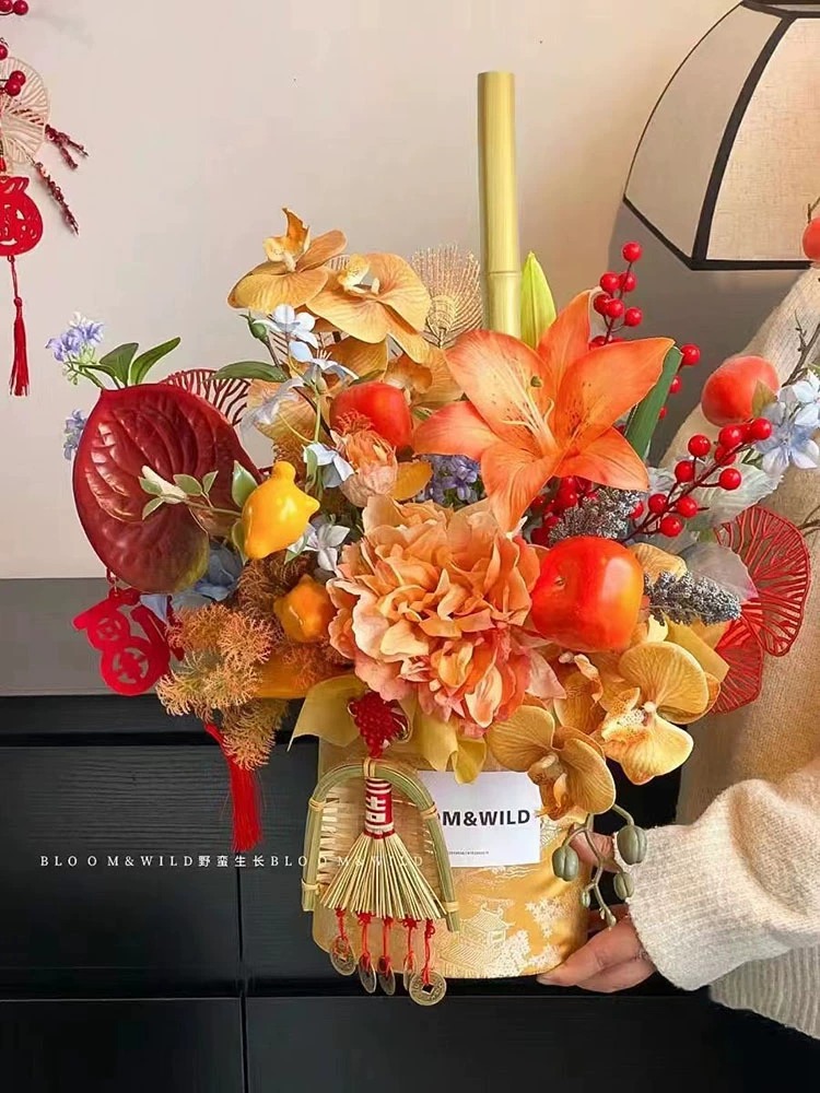 Varilla de bambú dorado natural color primario bambú ramo floral arreglo floral material bendición cubo decoración de Año Nuevo accesorios de flores de víspera de Año Nuevo