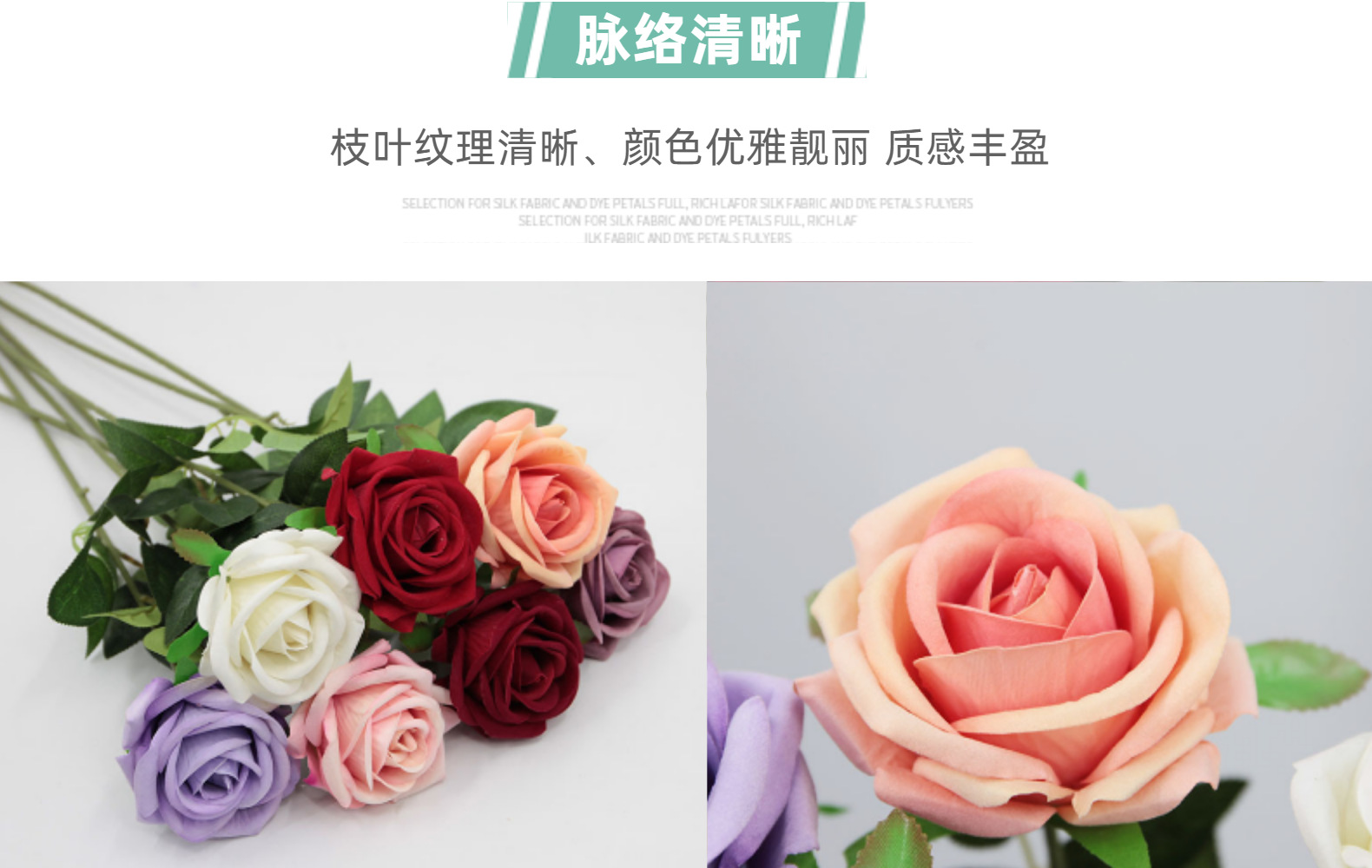 Rosa artificial sensación franela Rosa flor artificial ramo de la boda flor artificial Flor de seda hogar de gama alta al por mayor
