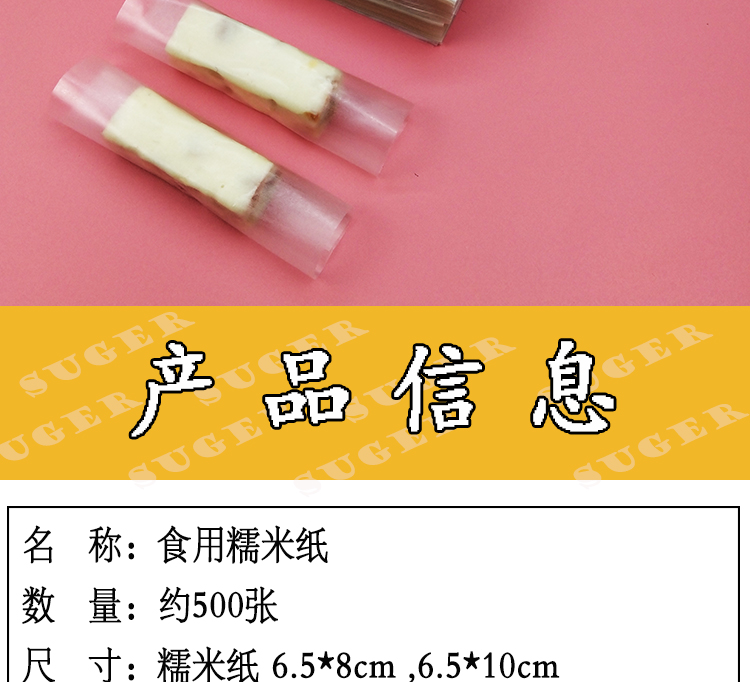 Papel de arroz pegajoso para pastel de arroz pegajoso, papel de azúcar comestible, papel de embalaje de caramelo de nieve, pastilla de nieve, dulces helados, calabaza