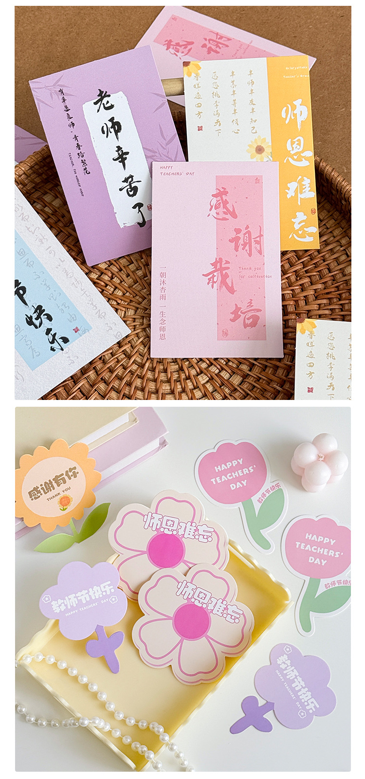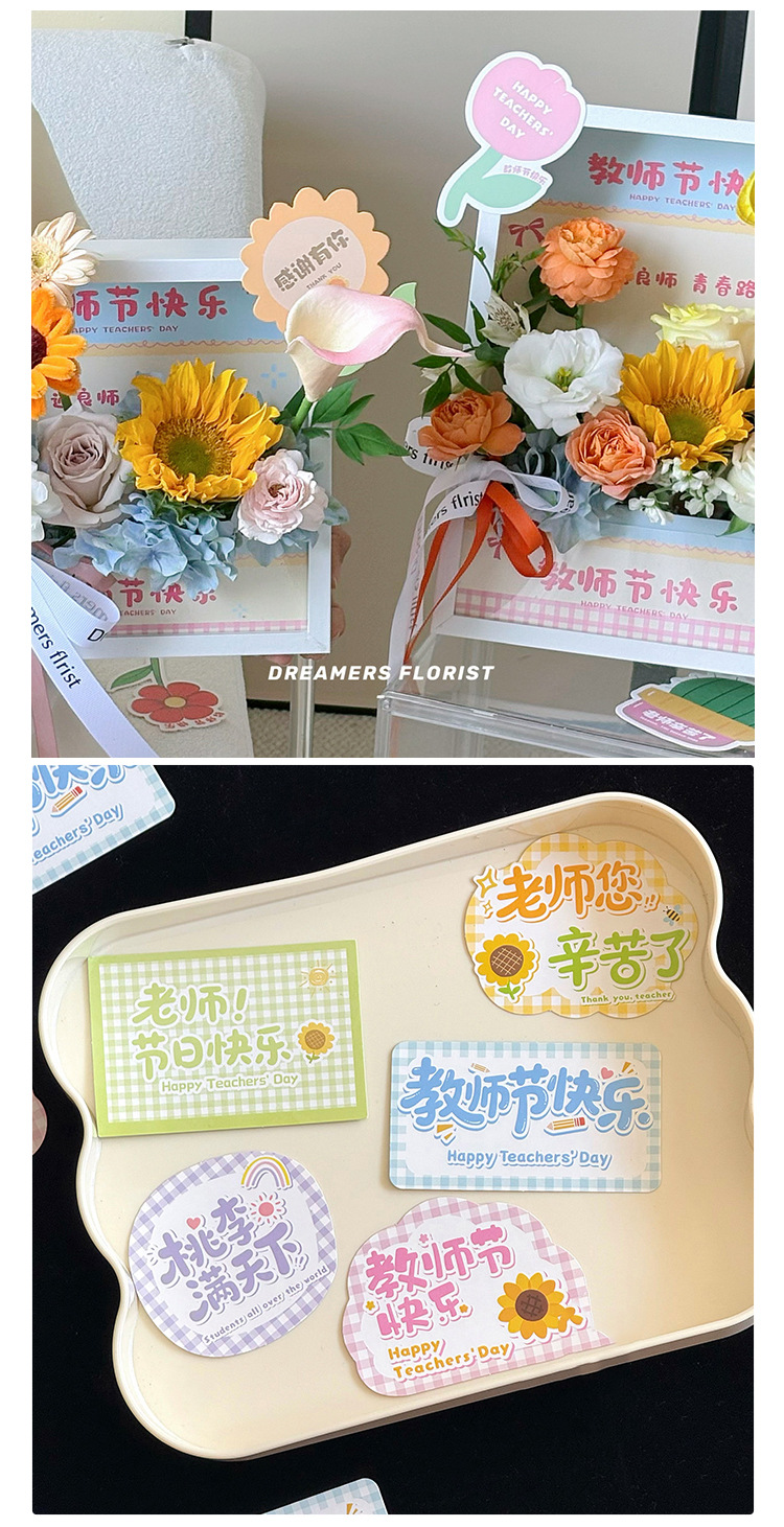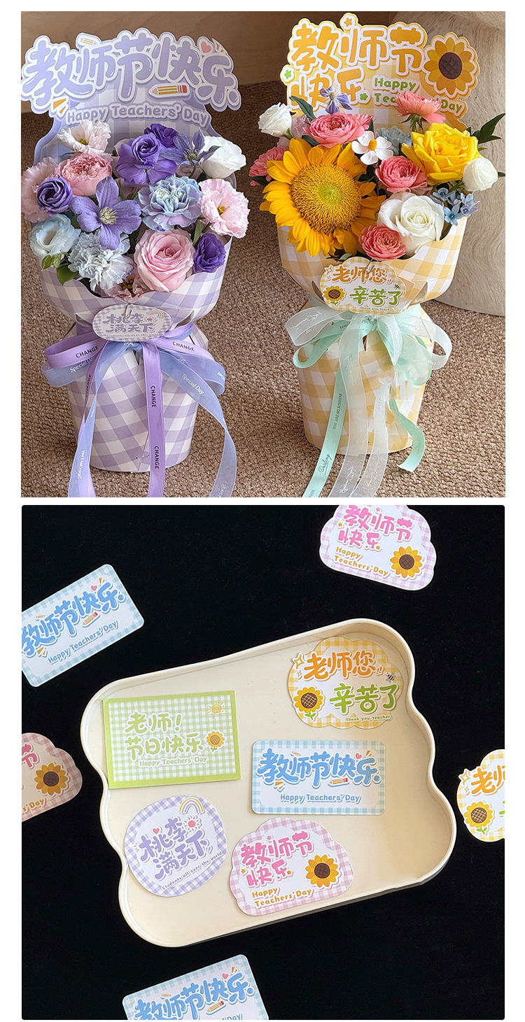 Feliz Día del Maestro Gracias Maestro Tarjeta de mensaje ramo de flores tarjeta de decoración de pastel caligrafía retro tarjeta de felicitación floral