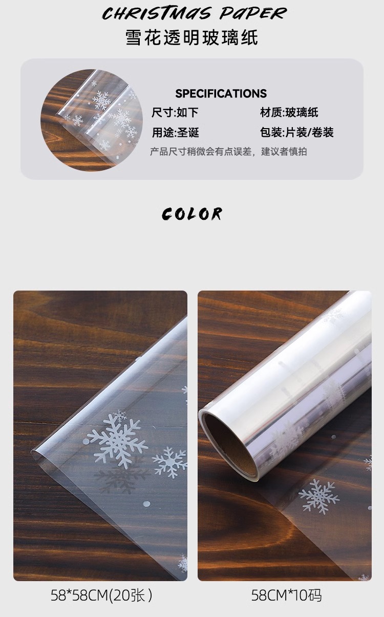 | Color | Papel de vidrio de copo de nieve en rollo [58CM * 10 yardas], papel de vidrio de copo de nieve [58 * 58CM 20 hojas]) |
