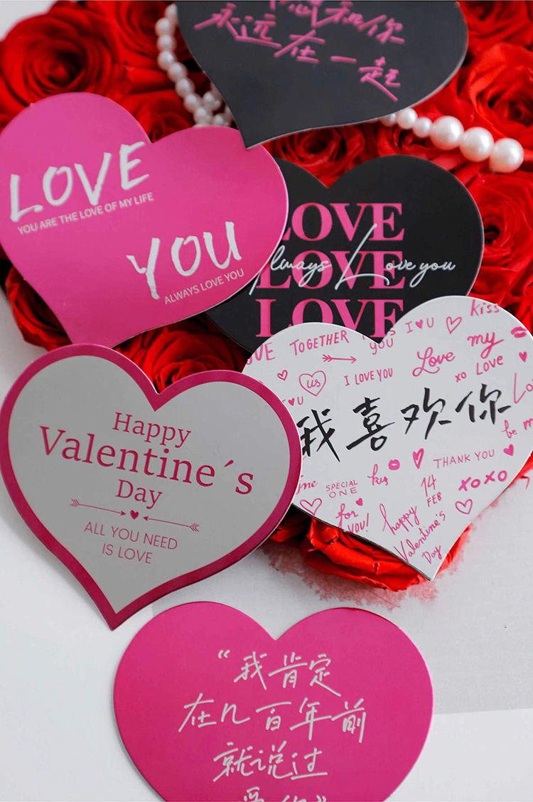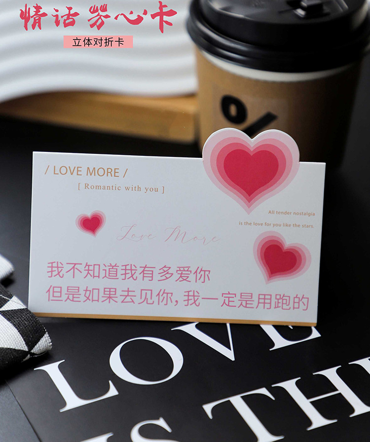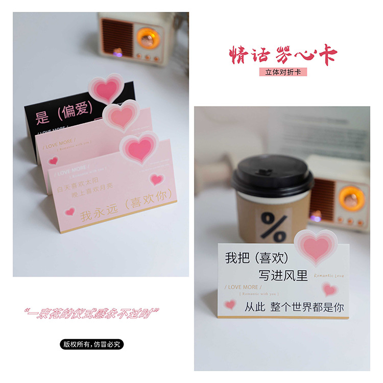 Día de San Valentín tarjeta en forma de corazón tarjeta plegable rectangular flor regalo ramo embalaje amor bendición tarjeta de felicitación