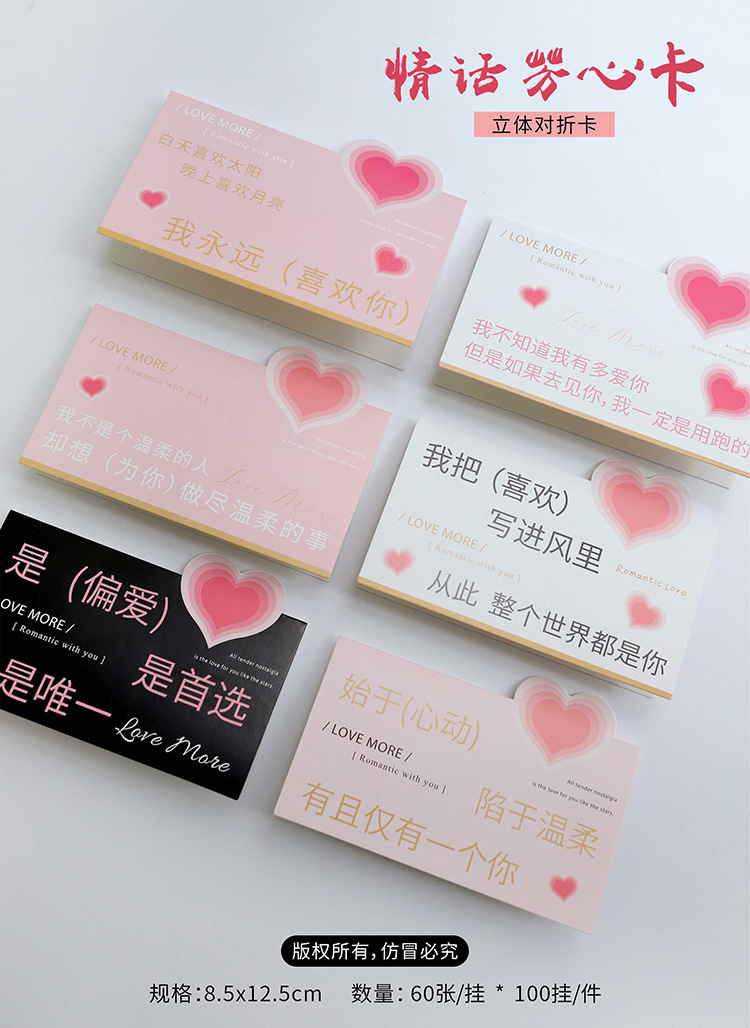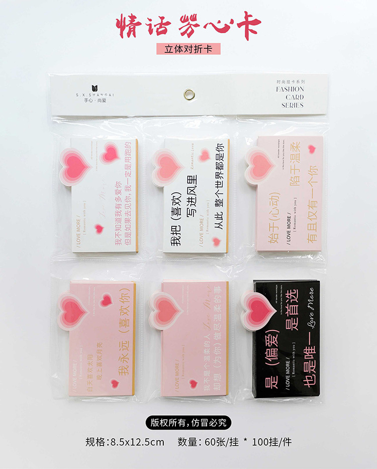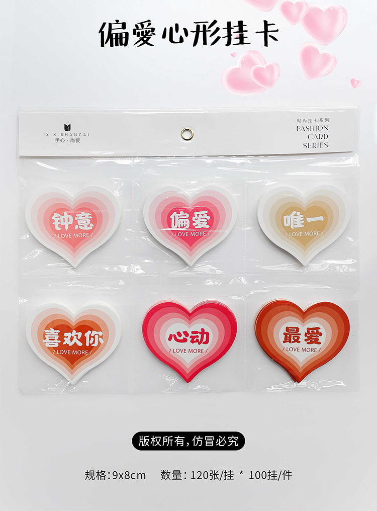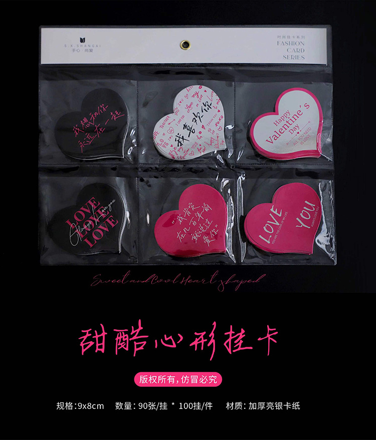 | Tamaño | 01 prefieren 120 tarjetas colgantes en forma de corazón/colgando,02 amor palabra tarjeta plegable 60 hojas/colgante,03 dulce fresco tarjeta colgante en forma de corazón 90 hojas/colgando |